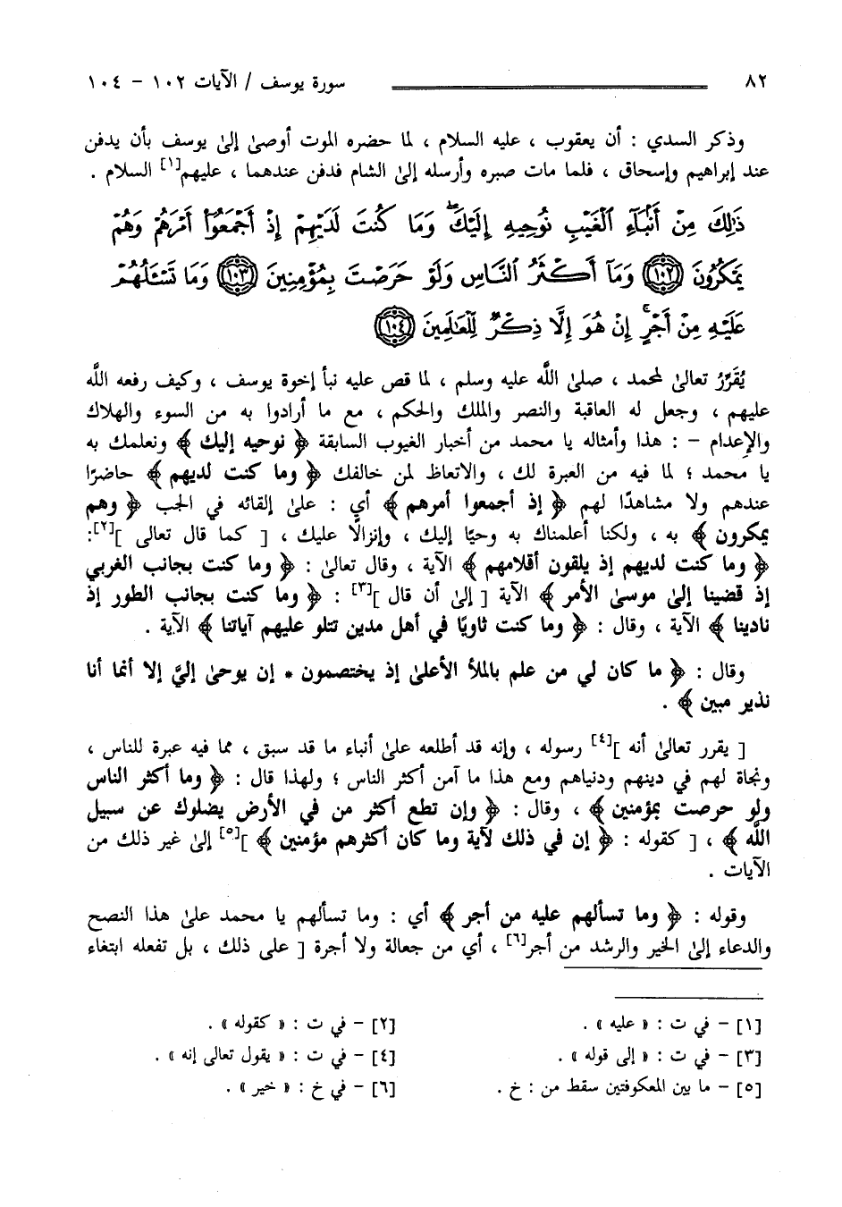 يَقُول تَعَالَى لِمُحَمَّدٍ صَلَّى اللَّه عَلَيْهِ وَسَلَّمَ لَمَّا قَصَّ عَلَيْهِ نَبَأ إِخْوَة يُوسُف وَكَيْف رَفَعَهُ اللَّه عَلَيْهِمْ وَجَعَلَ لَهُ الْعَاقِبَة وَالنَّصْر وَالْمُلْك وَالْحُكْم مَعَ مَا أَرَادُوا بِهِ مِنْ السُّوء وَالْهَلَاك وَالْإِعْدَام هَذَا وَأَمْثَاله يَا مُحَمَّد مِنْ أَخْبَار الْغُيُوب السَّابِقَة " نُوحِيه إِلَيْك " وَنُعْلِمك بِهِ يَا مُحَمَّد لِمَا فِيهِ مِنْ الْعِبْرَة لَك وَالِاتِّعَاظ لِمَنْ خَالَفَك " وَمَا كُنْت لَدَيْهِمْ " حَاضِرًا عِنْدهمْ وَلَا مُشَاهِدًا لَهُمْ " إِذْ أَجْمَعُوا أَمْرهمْ " أَيْ عَلَى إِلْقَائِهِ فِي الْجُبّ" وَهُمْ يَمْكُرُونَ " بِهِ وَلَكِنَّا أَعْلَمْنَاك بِهِ وَحْيًا إِلَيْك وَإِنْزَالًا عَلَيْك كَقَوْلِهِ " وَمَا كُنْت لَدَيْهِمْ إِذْ يُلْقُونَ أَقْلَامهمْ " الْآيَة وَقَالَ تَعَالَى " وَمَا كُنْت بِجَانِبِ الْغَرْبِيّ إِذْ قَضَيْنَا إِلَى مُوسَى الْأَمْر " الْآيَة إِلَى قَوْله " وَمَا كُنْت بِجَانِبِ الطُّور إِذْ نَادَيْنَا " الْآيَة وَقَالَ " وَمَا كُنْت ثَاوِيًا فِي أَهْل مَدْيَن تَتْلُو عَلَيْهِمْ آيَاتنَا " الْآيَة وَقَالَ " مَا كَانَ لِي مِنْ عِلْم بِالْمَلَأِ الْأَعْلَى إِذْ يَخْتَصِمُونَ إِنْ يُوحَى إِلَيَّ أَنَّمَا أَنَا نَذِير مُبِين " يَقُول تَعَالَى إِنَّهُ رَسُوله وَإِنَّهُ قَدْ أَطْلَعَهُ عَلَى أَنْبَاء مَا قَدْ سَبَقَ مِمَّا فِيهِ عِبْرَة لِلنَّاسِ وَنَجَاة لَهُمْ فِي دِينهمْ وَدُنْيَاهُمْ وَمَعَ هَذَا مَا آمَنَ أَكْثَر النَّاس وَلِهَذَا قَالَ" وَمَا أَكْثَر النَّاس وَلَوْ حَرَصْت بِمُؤْمِنِينَ " وَقَالَ " وَإِنْ تُطِعْ أَكْثَر مَنْ فِي الْأَرْض يُضِلُّوك عَنْ سَبِيل اللَّه " كَقَوْلِهِ" إِنَّ فِي ذَلِكَ لَآيَة وَمَا كَانَ أَكْثَرهمْ مُؤْمِنِينَ " إِلَى غَيْر ذَلِكَ مِنْ الْآيَات .