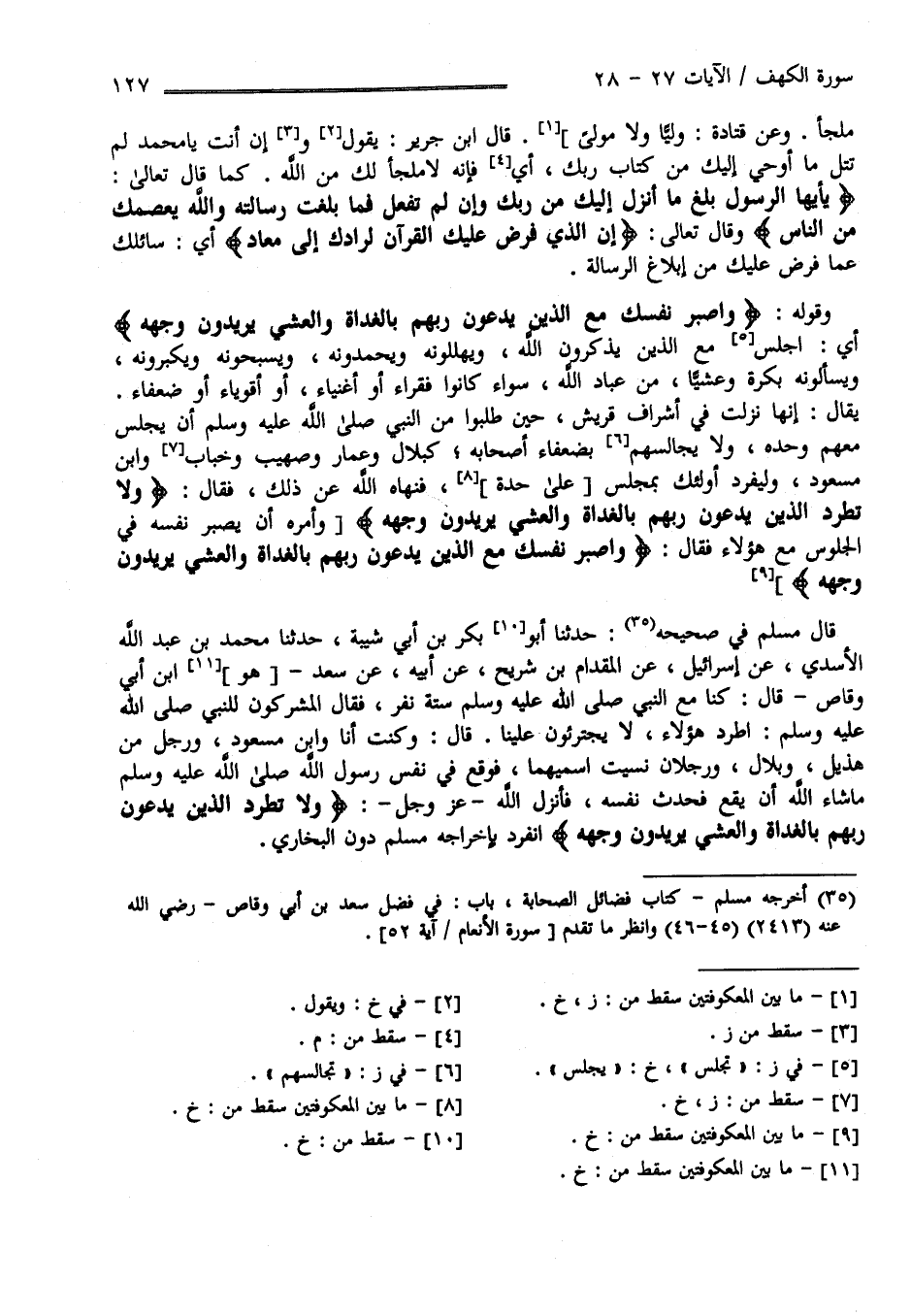 وَاصْبِرْ نَفْسَكَ مَعَ الَّذِينَ يَدْعُونَ رَبَّهُمْ بِالْغَدَاةِ وَالْعَشِيِّ يُرِيدُونَ وَجْهَهُ وَلَا تَعْدُ عَيْنَاكَ عَنْهُمْ تُرِيدُ زِينَةَ الْحَيَاةِ الدُّنْيَا وَلَا تُطِعْ مَنْ أَغْفَلْنَا قَلْبَهُ عَنْ ذِكْرِنَا وَاتَّبَعَ هَوَاهُ وَكَانَ أَمْرُهُ فُرُطًا