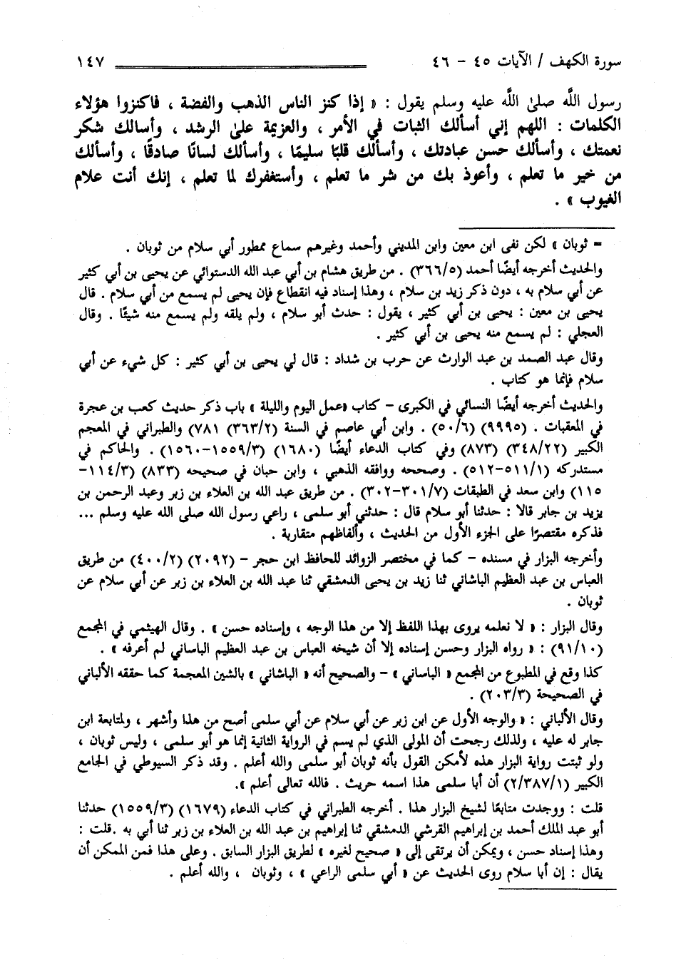 رَسُول اللَّه صَلَّى اللَّه عَلَيْهِ وَسَلَّمَ يَقُول : " إِذَا كَنَزَ النَّاس الذَّهَب وَالْفِضَّة فَاكْنِزُوا أَنْتُمْ هَؤُلَاءِ الْكَلِمَات : اللَّهُمَّ إِنِّي أَسْأَلك الثَّبَات فِي الْأَمْر وَالْعَزِيمَة عَلَى الرُّشْد وَأَسْأَلك شُكْر نِعْمَتك وَأَسْأَلك حُسْن عِبَادَتك وَأَسْأَلك قَلْبًا سَلِيمًا وَأَسْأَلك لِسَانًا صَادِقًا وَأَسْأَلك مِنْ خَيْر مَا تَعْلَم وَأَعُوذ بِك مِنْ شَرّ مَا تَعْلَم وَأَسْتَغْفِرك لِمَا تَعْلَم إِنَّك أَنْتَ عَلَّام الْغُيُوب "