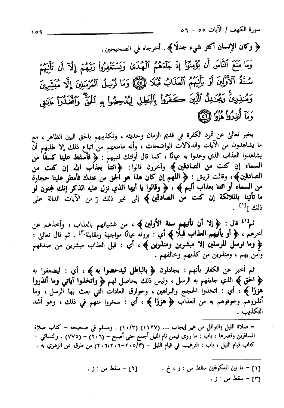 وَمَا مَنَعَ النَّاسَ أَنْ يُؤْمِنُوا إِذْ جَاءَهُمُ الْهُدَى وَيَسْتَغْفِرُوا رَبَّهُمْ إِلَّا أَنْ تَأْتِيَهُمْ سُنَّةُ الْأَوَّلِينَ أَوْ يَأْتِيَهُمُ الْعَذَابُ قُبُلًا (55)