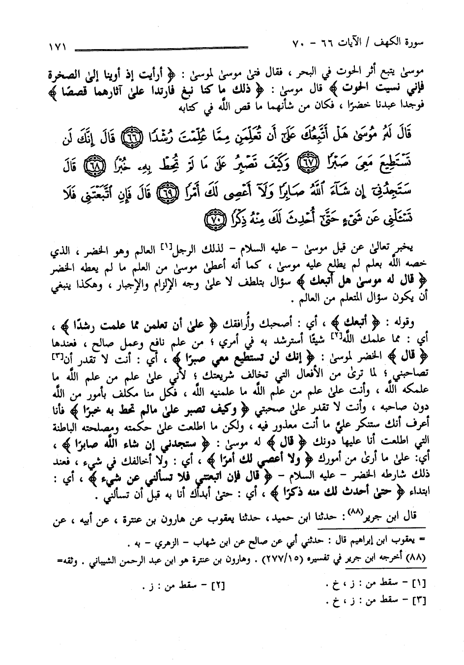 قَالَ فَإِنِ اتَّبَعْتَنِي فَلَا تَسْأَلْنِي عَنْ شَيْءٍ حَتَّى أُحْدِثَ لَكَ مِنْهُ ذِكْرًا (70)