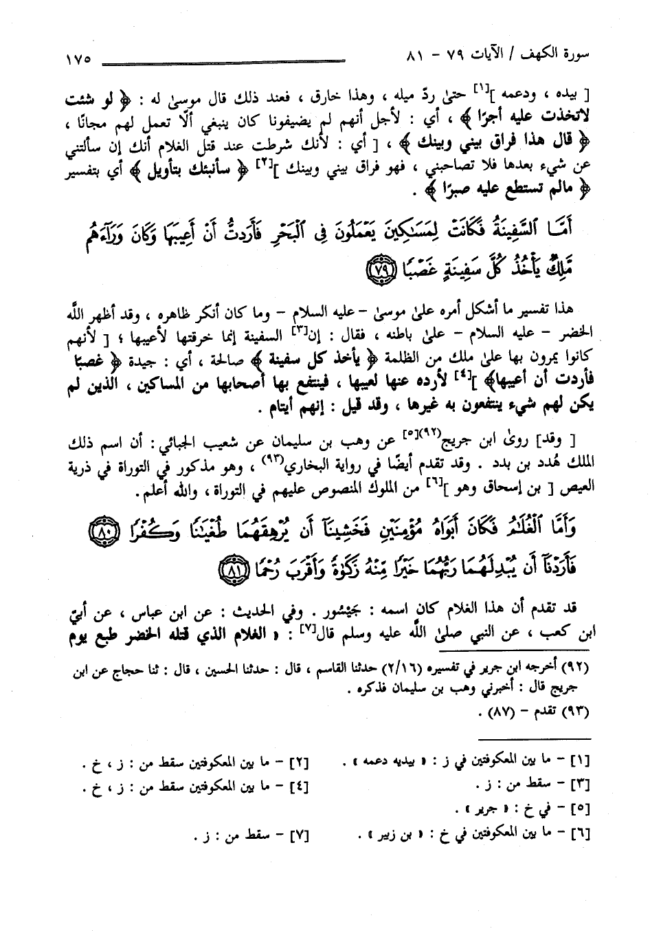 أَمَّا السَّفِينَةُ فَكَانَتْ لِمَسَاكِينَ يَعْمَلُونَ فِي الْبَحْرِ فَأَرَدْتُ أَنْ أَعِيبَهَا وَكَانَ وَرَاءَهُمْ مَلِكٌ يَأْخُذُ كُلَّ سَفِينَةٍ غَصْبًا (79)