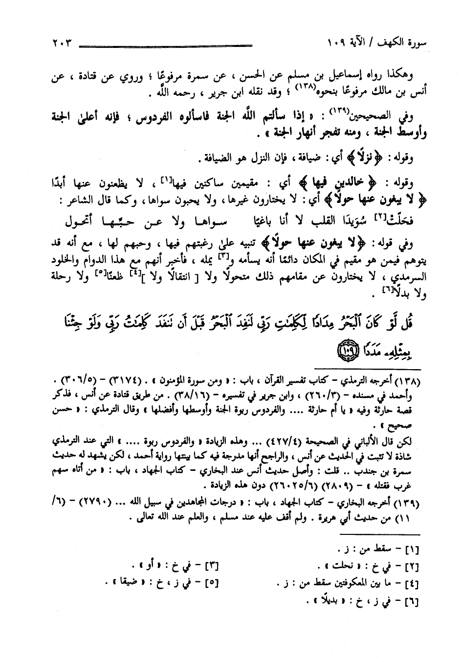 قُلْ لَوْ كَانَ الْبَحْرُ مِدَادًا لِكَلِمَاتِ رَبِّي لَنَفِدَ الْبَحْرُ قَبْلَ أَنْ تَنْفَدَ كَلِمَاتُ رَبِّي وَلَوْ جِئْنَا بِمِثْلِهِ مَدَدًا (109)
