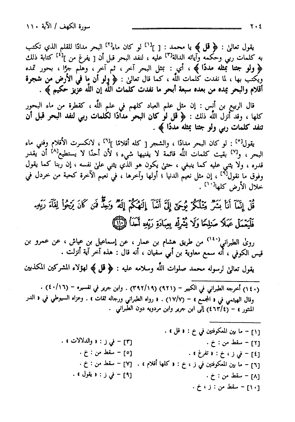 قُلْ إِنَّمَا أَنَا بَشَرٌ مِثْلُكُمْ يُوحَى إِلَيَّ أَنَّمَا إِلَهُكُمْ إِلَهٌ وَاحِدٌ فَمَنْ كَانَ يَرْجُو لِقَاءَ رَبِّهِ فَلْيَعْمَلْ عَمَلًا صَالِحًا وَلَا يُشْرِكْ بِعِبَادَةِ رَبِّهِ أَحَدًا (110)