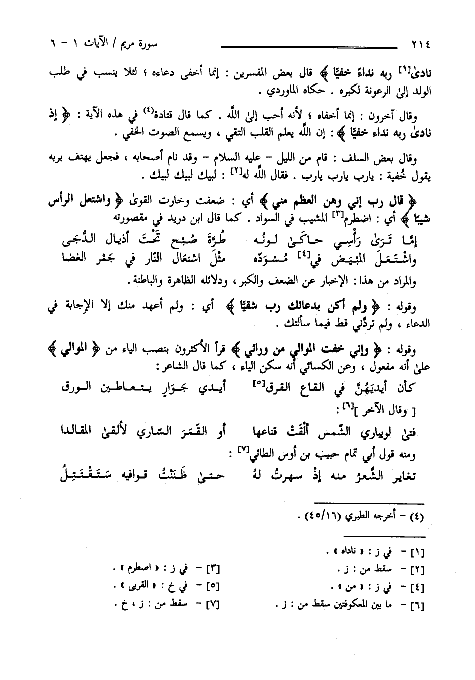 وَالْمُرَاد مِنْ هَذَا الْإِخْبَار عَنْ الضَّعْف وَالْكِبَر وَدَلَائِله الظَّاهِرَة وَالْبَاطِنَة وَقَوْله " وَلَمْ أَكُنْ بِدُعَائِك رَبّ شَقِيًّا " أَيْ وَلَمْ أَعْهَد مِنْك إِلَّا الْإِجَابَة فِي الدُّعَاء وَلَمْ تَرُدّنِي قَطُّ فِيمَا سَأَلْتُك وَقَوْله " وَإِنِّي خِفْت الْمَوَالِي مِنْ وَرَائِي " قَرَأَ الْأَكْثَرُونَ بِنَصْبِ الْيَاء مِنْ الْمَوَالِي عَلَى أَنَّهُ مَفْعُول وَعَنْ الْكِسَائِيّ أَنَّهُ سَكَّنَ الْيَاء كَمَا قَالَ الشَّاعِر :