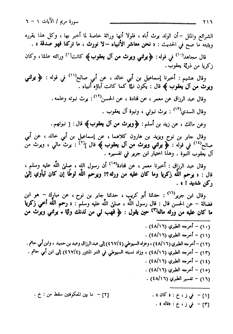 قَالَ مُجَاهِد فِي قَوْله " يَرِثنِي وَيَرِث مِنْ آلِ يَعْقُوب " كَانَ وِرَاثَته عِلْمًا وَكَانَ زَكَرِيَّا مِنْ ذُرِّيَّة يَعْقُوب وَقَالَ هُشَيْم أَخْبَرَنَا إِسْمَاعِيل بْن أَبِي خَالِد عَنْ أَبِي صَالِح فِي قَوْله " يَرِثنِي وَيَرِث مِنْ آلِ يَعْقُوب " قَالَ يَكُون نَبِيًّا كَمَا كَانَتْ آبَاؤُهُ أَنْبِيَاء وَقَالَ عَبْد الرَّزَّاق عَنْ مَعْمَر عَنْ قَتَادَة عَنْ الْحَسَن يَرِث نُبُوَّته وَعِلْمه وَقَالَ السُّدِّيّ يَرِث نُبُوَّتِي وَنُبُوَّة آلِ يَعْقُوب وَعَنْ مَالِك عَنْ زَيْد بْن أَسْلَمَ " وَيَرِث مِنْ آلِ يَعْقُوب " قَالَ نُبُوَّتهمْ وَقَالَ جَابِر بْن نُوح وَيَزِيد بْن هَارُون كِلَاهُمَا عَنْ إِسْمَاعِيل بْن أَبِي خَالِد عَنْ أَبِي صَالِح فِي قَوْله " يَرِثنِي وَيَرِث مِنْ آلِ يَعْقُوب " قَالَ : يَرِث مَالِي وَيَرِث مِنْ آلِ يَعْقُوب النُّبُوَّة وَهَذَا اِخْتِيَار اِبْن جَرِير فِي تَفْسِيره وَقَالَ عَبْد الرَّزَّاق أَخْبَرَنَا مَعْمَر عَنْ قَتَادَة أَنَّ النَّبِيّ صَلَّى اللَّه عَلَيْهِ وَسَلَّمَ قَالَ " يَرْحَم اللَّه زَكَرِيَّا وَمَا كَانَ عَلَيْهِ مِنْ وِرَاثَة مَاله وَيَرْحَم اللَّه لُوطًا إِنْ كَانَ لَيَأْوِي إِلَى رُكْن شَدِيد " .
