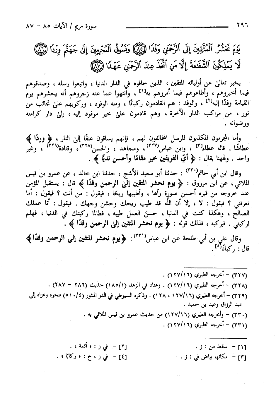 يَوْمَ نَحْشُرُ الْمُتَّقِينَ إِلَى الرَّحْمَنِ وَفْدًا (85)