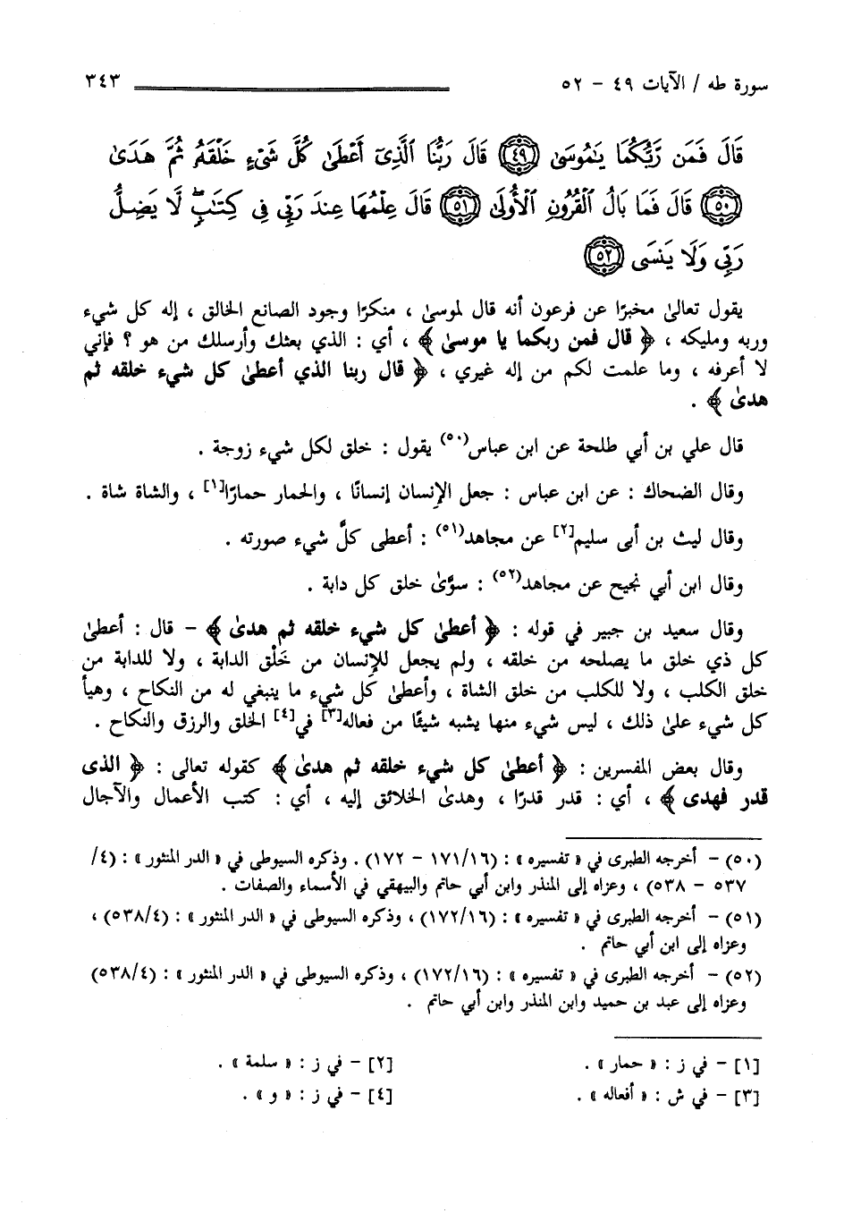 قَالَ رَبُّنَا الَّذِي أَعْطَى كُلَّ شَيْءٍ خَلْقَهُ ثُمَّ هَدَى (50)
