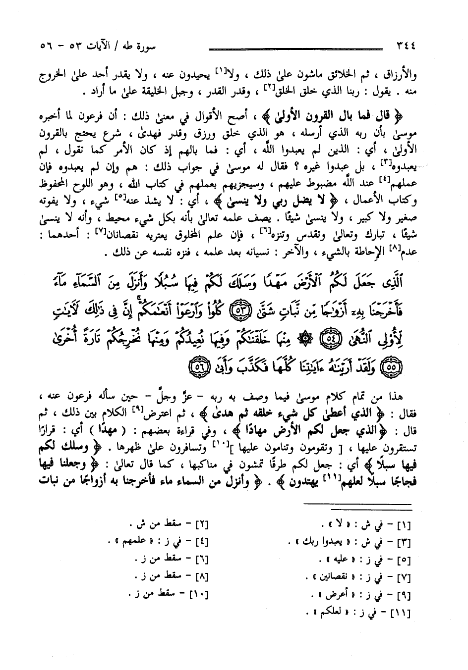 الَّذِي جَعَلَ لَكُمُ الْأَرْضَ مَهْدًا وَسَلَكَ لَكُمْ فِيهَا سُبُلًا وَأَنْزَلَ مِنَ السَّمَاءِ مَاءً فَأَخْرَجْنَا بِهِ أَزْوَاجًا مِنْ نَبَاتٍ شَتَّى (53)