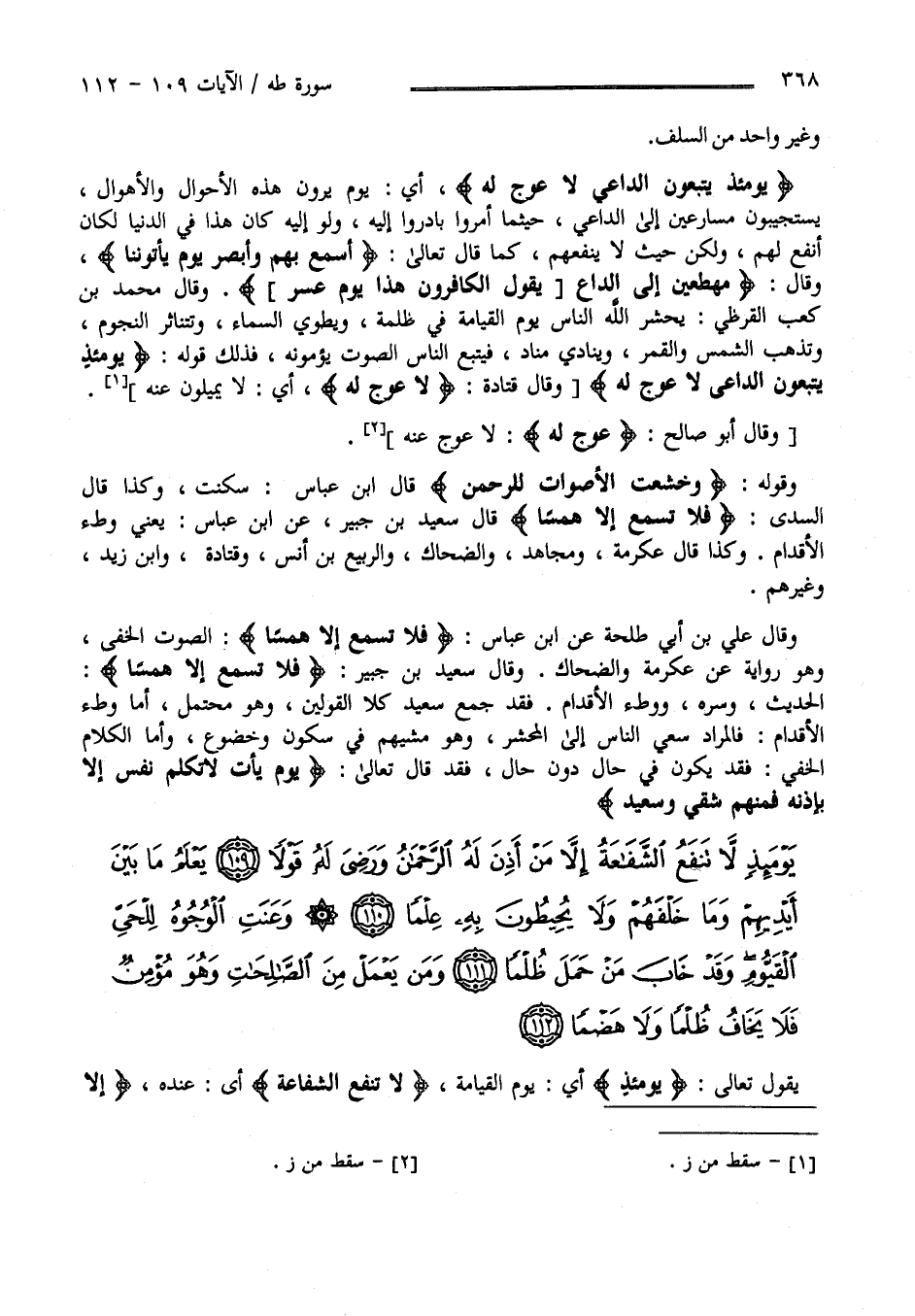يَوْمَئِذٍ لَا تَنْفَعُ الشَّفَاعَةُ إِلَّا مَنْ أَذِنَ لَهُ الرَّحْمَنُ وَرَضِيَ لَهُ قَوْلًا (109)