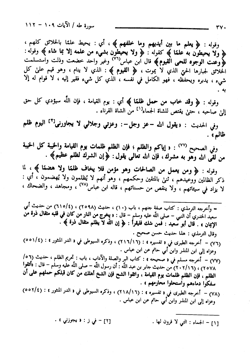 وَعَنَتِ الْوُجُوهُ لِلْحَيِّ الْقَيُّومِ وَقَدْ خَابَ مَنْ حَمَلَ ظُلْمًا (111)