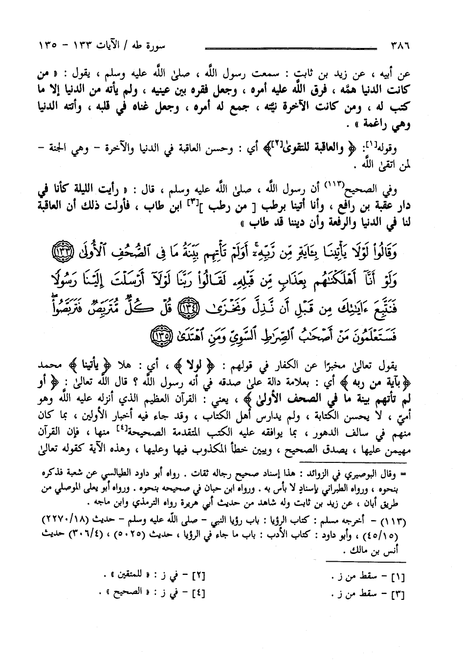 وَقَالُوا لَوْلَا يَأْتِينَا بِآَيَةٍ مِنْ رَبِّهِ أَوَلَمْ تَأْتِهِمْ بَيِّنَةُ مَا فِي الصُّحُفِ الْأُولَى (133)