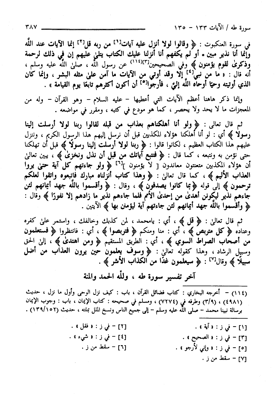 آخِر تَفْسِير سُورَة طه وَلِلَّهِ الْحَمْد وَالْمِنَّة وَيَتْلُوهُ إِنْ شَاءَ اللَّه تَفْسِير سُورَة الْأَنْبِيَاء وَلِلَّهِ الْحَمْد .