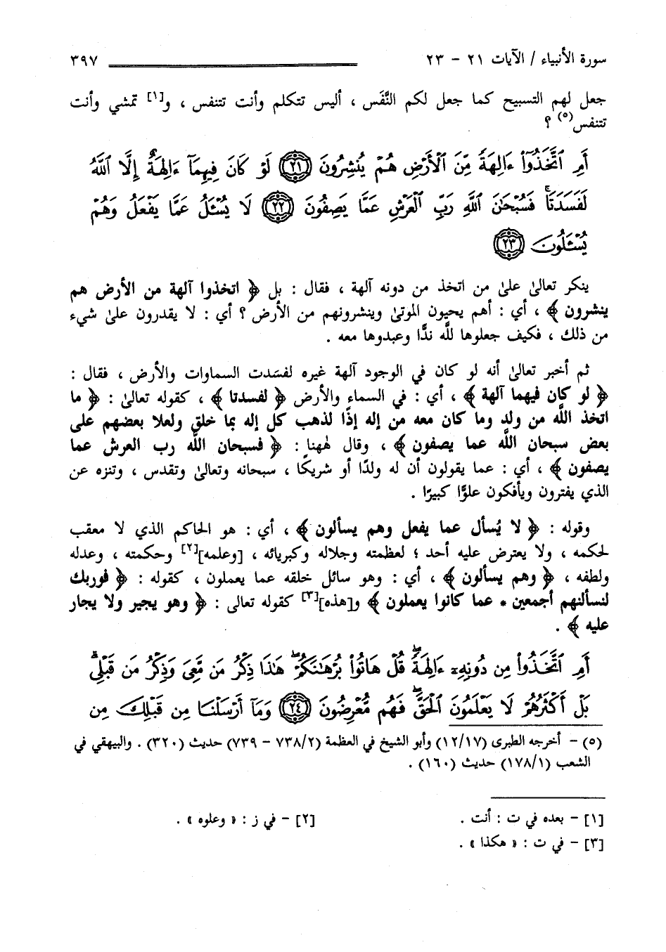 لَوْ كَانَ فِيهِمَا آلِهَةٌ إِلَّا اللَّهُ لَفَسَدَتَا فَسُبْحَانَ اللَّهِ رَبِّ الْعَرْشِ عَمَّا يَصِفُونَ