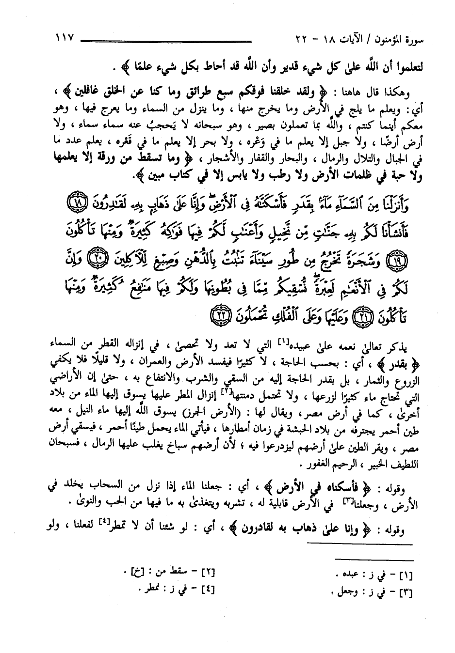 وَأَنْزَلْنَا مِنَ السَّمَاءِ مَاءً بِقَدَرٍ فَأَسْكَنَّاهُ فِي الْأَرْضِ وَإِنَّا عَلَى ذَهَابٍ بِهِ لَقَادِرُونَ (18)
