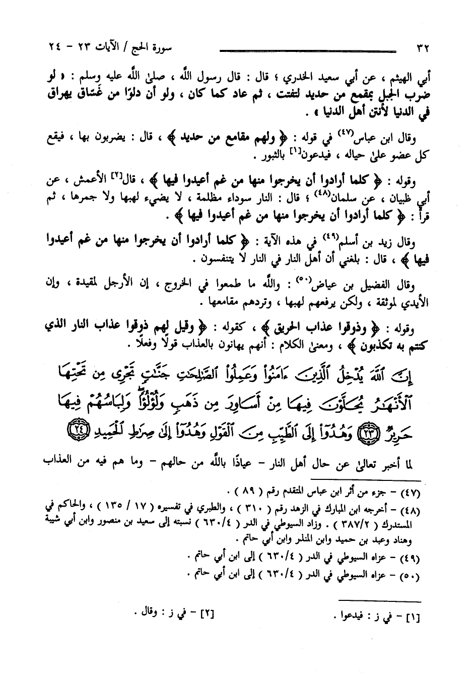 إِنَّ اللَّهَ يُدْخِلُ الَّذِينَ آَمَنُوا وَعَمِلُوا الصَّالِحَاتِ جَنَّاتٍ تَجْرِي مِنْ تَحْتِهَا الْأَنْهَارُ يُحَلَّوْنَ فِيهَا مِنْ أَسَاوِرَ مِنْ ذَهَبٍ وَلُؤْلُؤًا وَلِبَاسُهُمْ فِيهَا حَرِيرٌ (23)