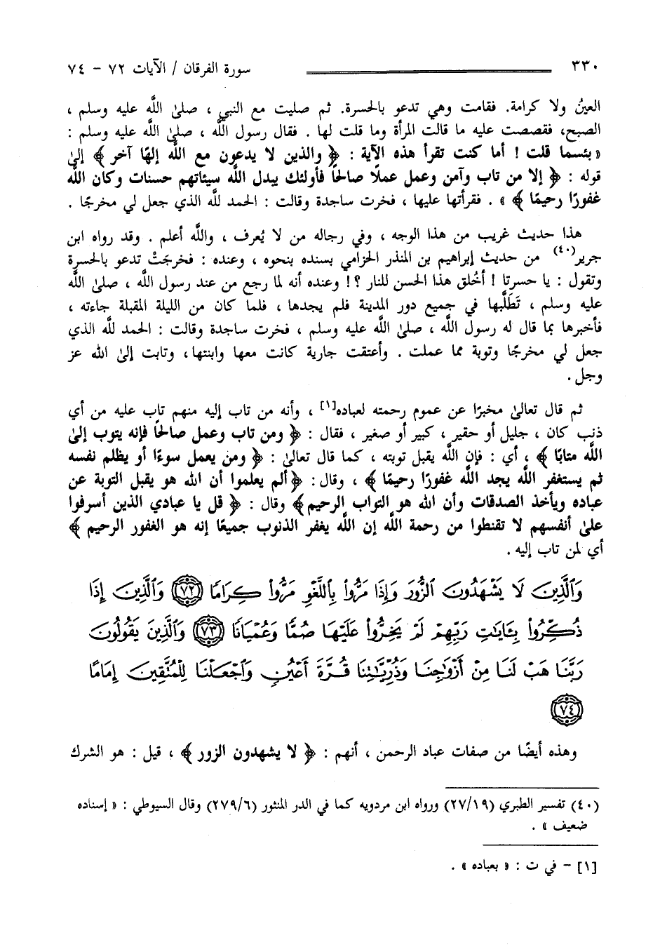 وَالَّذِينَ لَا يَشْهَدُونَ الزُّورَ وَإِذَا مَرُّوا بِاللَّغْوِ مَرُّوا كِرَامًا (72)
