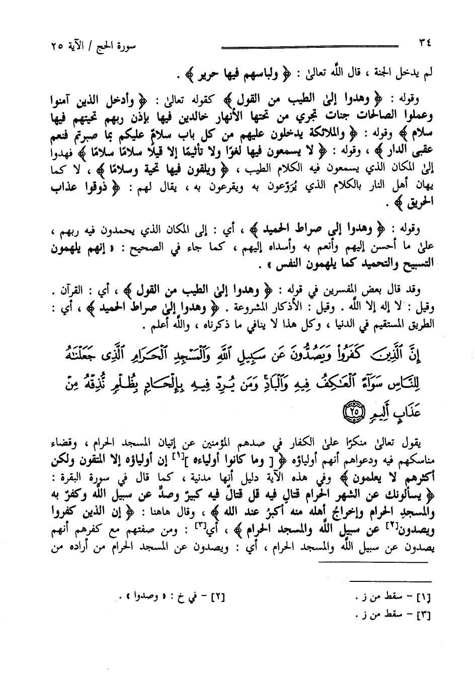 إِنَّ الَّذِينَ كَفَرُوا وَيَصُدُّونَ عَنْ سَبِيلِ اللَّهِ وَالْمَسْجِدِ الْحَرَامِ الَّذِي جَعَلْنَاهُ لِلنَّاسِ سَوَاءً الْعَاكِفُ فِيهِ وَالْبَادِ وَمَنْ يُرِدْ فِيهِ بِإِلْحَادٍ بِظُلْمٍ نُذِقْهُ مِنْ عَذَابٍ أَلِيمٍ (25)