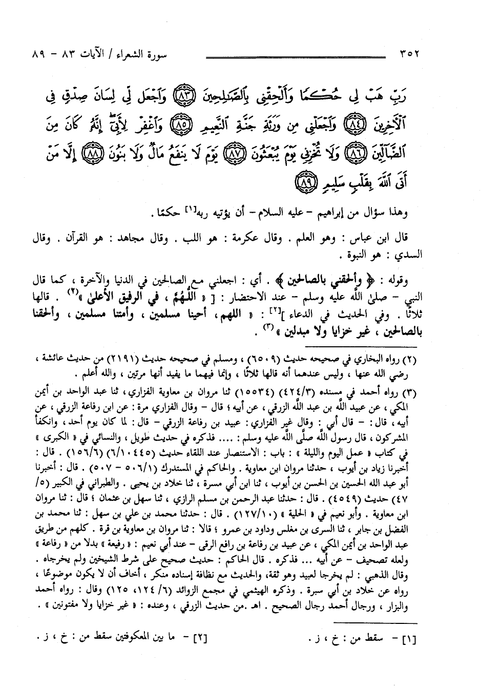 وَهَذَا سُؤَال مِنْ إِبْرَاهِيم عَلَيْهِ السَّلَام أَنْ يُؤْتِيه رَبّه حُكْمًا قَالَ اِبْن عَبَّاس وَهُوَ الْعِلْم وَقَالَ عِكْرِمَة هُوَ اللُّبّ وَقَالَ مُجَاهِد هُوَ الْقُرْآن وَقَالَ السُّدِّيّ هُوَ النُّبُوَّة وَقَوْله : " وَأَلْحِقْنِي بِالصَّالِحِينَ " أَيْ اِجْعَلْنِي مَعَ الصَّالِحِينَ فِي الدُّنْيَا وَالْآخِرَة كَمَا قَالَ النَّبِيّ صَلَّى اللَّه عَلَيْهِ وَسَلَّمَ عِنْد الِاحْتِضَار " اللَّهُمَّ فِي الرَّفِيق الْأَعْلَى" قَالَهَا ثَلَاثًا وَفِي الْحَدِيث فِي الدُّعَاء " اللَّهُمَّ أَحْيِنَا مُسْلِمِينَ وَأَمِتْنَا مُسْلِمِينَ وَأَلْحِقْنَا بِالصَّالِحِينَ غَيْر خَزَايَا وَلَا مُبَدِّلِينَ "
