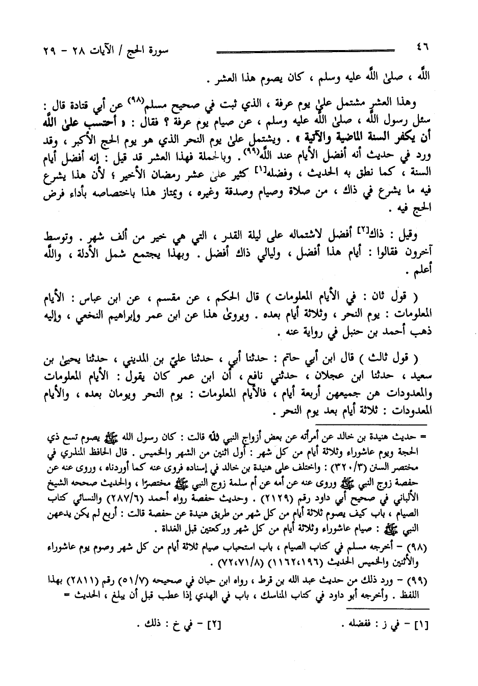 اللَّه كَانَ يَصُوم هَذَا الْعَشْر وَهَذَا الْعَشْر مُشْتَمِل عَلَى يَوْم عَرَفَة الَّذِي ثَبَتَ فِي صَحِيح مُسْلِم عَنْ أَبِي قَتَادَة قَالَ سُئِلَ رَسُول اللَّه صَلَّى اللَّه عَلَيْهِ وَسَلَّمَ عَنْ صِيَام يَوْم عَرَفَة فَقَالَ أَحْتَسِب عَلَى اللَّه أَنْ يُكَفِّر بِهِ السَّنَة الْمَاضِيَة وَالْآتِيَة وَيَشْتَمِل عَلَى يَوْم النَّحْر الَّذِي هُوَ يَوْم الْحَجّ الْأَكْبَر وَقَدْ وَرَدَ فِي حَدِيث أَنَّهُ أَفْضَل الْأَيَّام عِنْد اللَّه وَبِالْجُمْلَةِ فَهَذَا الْعَشْر قَدْ قِيلَ إِنَّهُ أَفْضَل أَيَّام السَّنَة كَمَا نَطَقَ بِهِ الْحَدِيث وَفَضْله كَثِير عَلَى عَشْر رَمَضَان الْأَخِير لِأَنَّ هَذَا يُشْرَع فِيهِ مَا يُشْرَع فِي ذَلِكَ مِنْ صَلَاة وَصِيَام وَصَدَقَة وَغَيْره وَيَمْتَاز هَذَا بِاخْتِصَاصِهِ بِأَدَاءِ فَرْض الْحَجّ فِيهِ وَقِيلَ ذَاكَ أَفْضَل لِاشْتِمَالِهِ عَلَى لَيْلَة الْقَدْر الَّتِي هِيَ خَيْر مِنْ أَلْف شَهْر وَتَوَسَّطَ آخَرُونَ فَقَالُوا أَيَّام هَذَا أَفْضَل وَلَيَالِي ذَاكَ أَفْضَل وَبِهَذَا يَجْتَمِع شَمْل الْأَدِلَّة وَاَللَّه أَعْلَم " قَوْل ثَانٍ " فِي الْأَيَّام الْمَعْلُومَات قَالَ الْحَكَم عَنْ مِقْسَم عَنْ اِبْن عَبَّاس الْأَيَّام الْمَعْلُومَات يَوْم النَّحْر وَثَلَاثَة أَيَّام بَعْده وَيُرْوَى هَذَا عَنْ اِبْن عُمَر وَإِبْرَاهِيم النَّخَعِيّ وَإِلَيْهِ ذَهَبَ أَحْمَد بْن حَنْبَل فِي رِوَايَة عَنْهُ " قَوْل ثَالِث " قَالَ اِبْن أَبِي حَاتِم حَدَّثَنَا أَبِي حَدَّثَنَا عَلِيّ بْن الْمَدِينِيّ حَدَّثَنَا يَحْيَى بْن سَعِيد حَدَّثَنَا اِبْن عَجْلَان حَدَّثَنِي نَافِع أَنَّ اِبْن عُمَر كَانَ يَقُول : الْأَيَّام الْمَعْلُومَات الْمَعْدُودَات هُنَّ جَمِيعهنَّ أَرْبَعَة أَيَّام فَالْأَيَّام الْمَعْلُومَات يَوْم النَّحْر وَيَوْمَانِ بَعْده وَالْأَيَّام الْمَعْدُودَات ثَلَاثَة أَيَّام بَعْد يَوْم النَّحْر