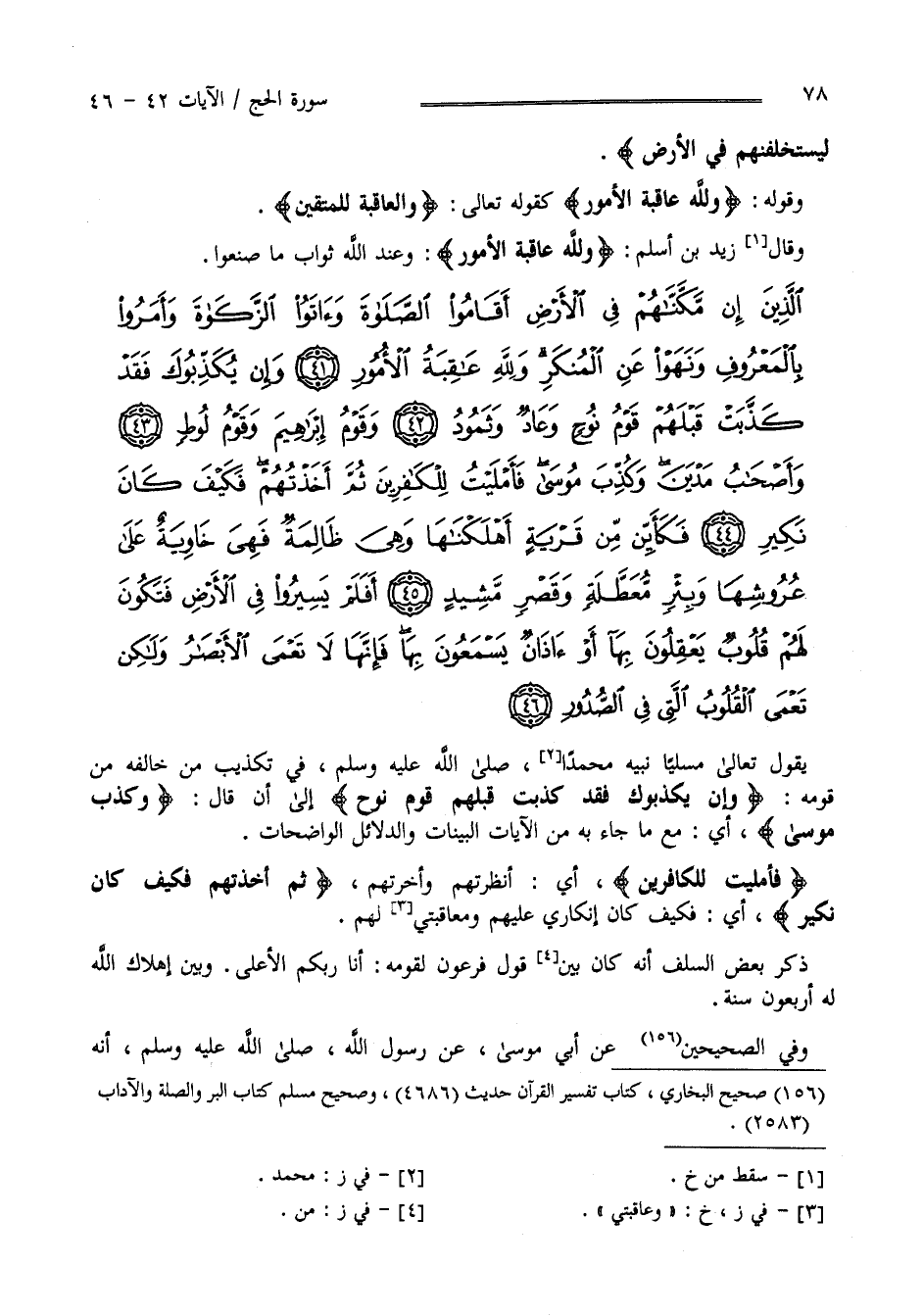 وَأَصْحَابُ مَدْيَنَ وَكُذِّبَ مُوسَى فَأَمْلَيْتُ لِلْكَافِرِينَ ثُمَّ أَخَذْتُهُمْ فَكَيْفَ كَانَ نَكِيرِ (44)