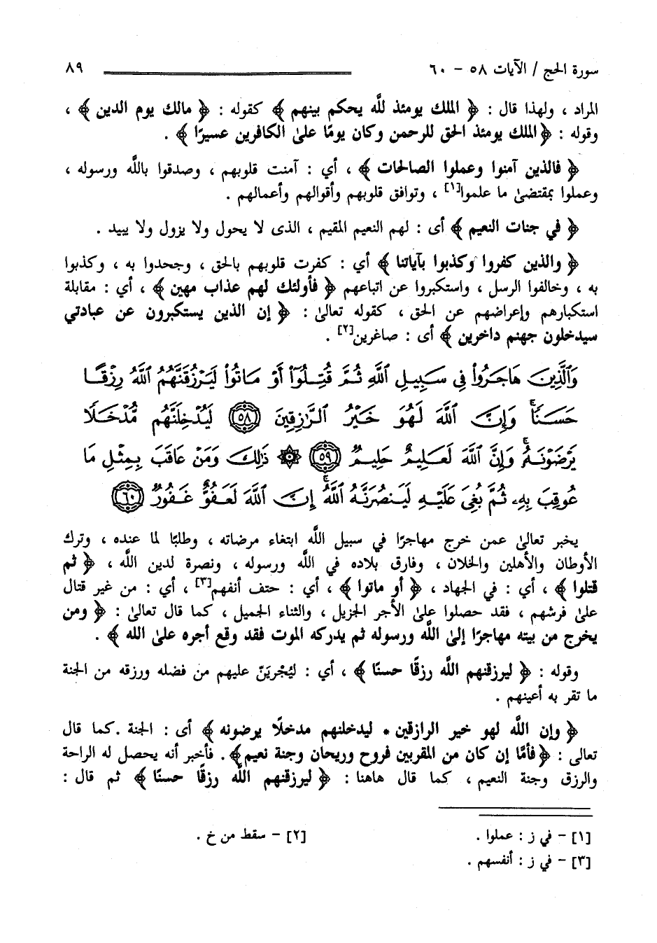 وَالَّذِينَ هَاجَرُوا فِي سَبِيلِ اللَّهِ ثُمَّ قُتِلُوا أَوْ مَاتُوا لَيَرْزُقَنَّهُمُ اللَّهُ رِزْقًا حَسَنًا وَإِنَّ اللَّهَ لَهُوَ خَيْرُ الرَّازِقِينَ (58)