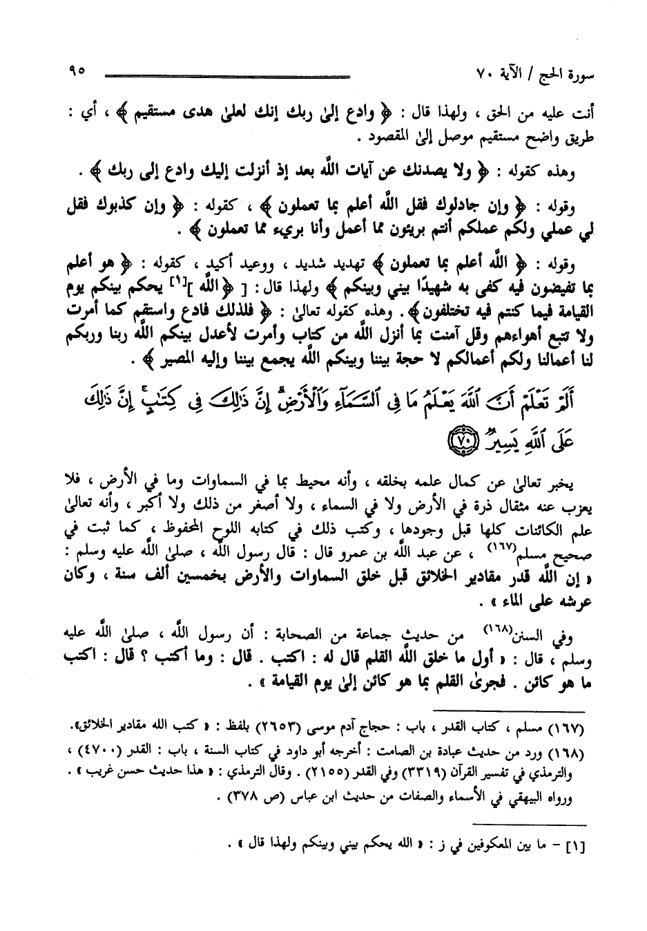 أَلَمْ تَعْلَمْ أَنَّ اللَّهَ يَعْلَمُ مَا فِي السَّمَاءِ وَالْأَرْضِ إِنَّ ذَلِكَ فِي كِتَابٍ إِنَّ ذَلِكَ عَلَى اللَّهِ يَسِيرٌ (70)