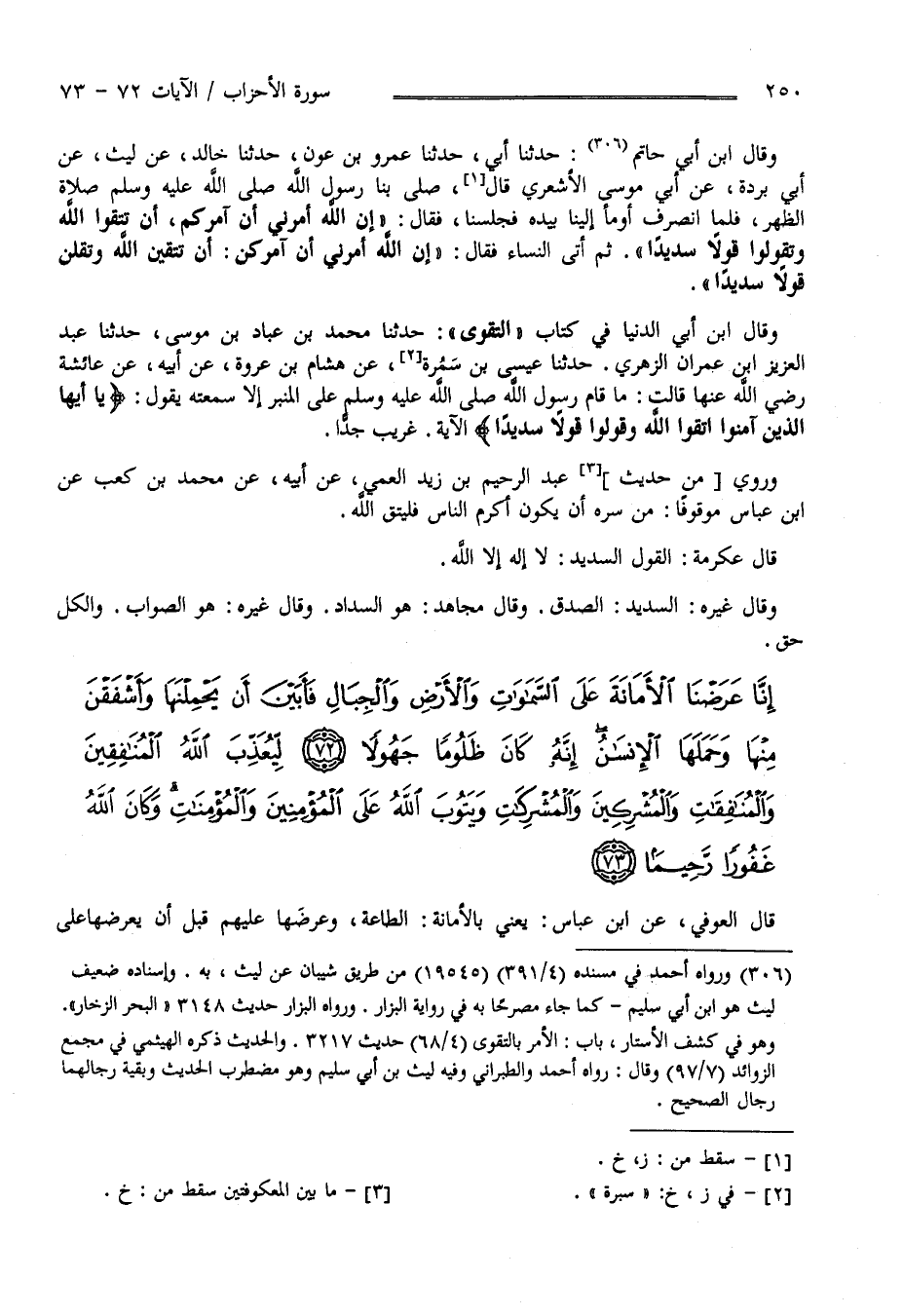 إِنَّا عَرَضْنَا الْأَمَانَةَ عَلَى السَّمَاوَاتِ وَالْأَرْضِ وَالْجِبَالِ فَأَبَيْنَ أَنْ يَحْمِلْنَهَا وَأَشْفَقْنَ مِنْهَا وَحَمَلَهَا الْإِنْسَانُ إِنَّهُ كَانَ ظَلُومًا جَهُولًا (72)