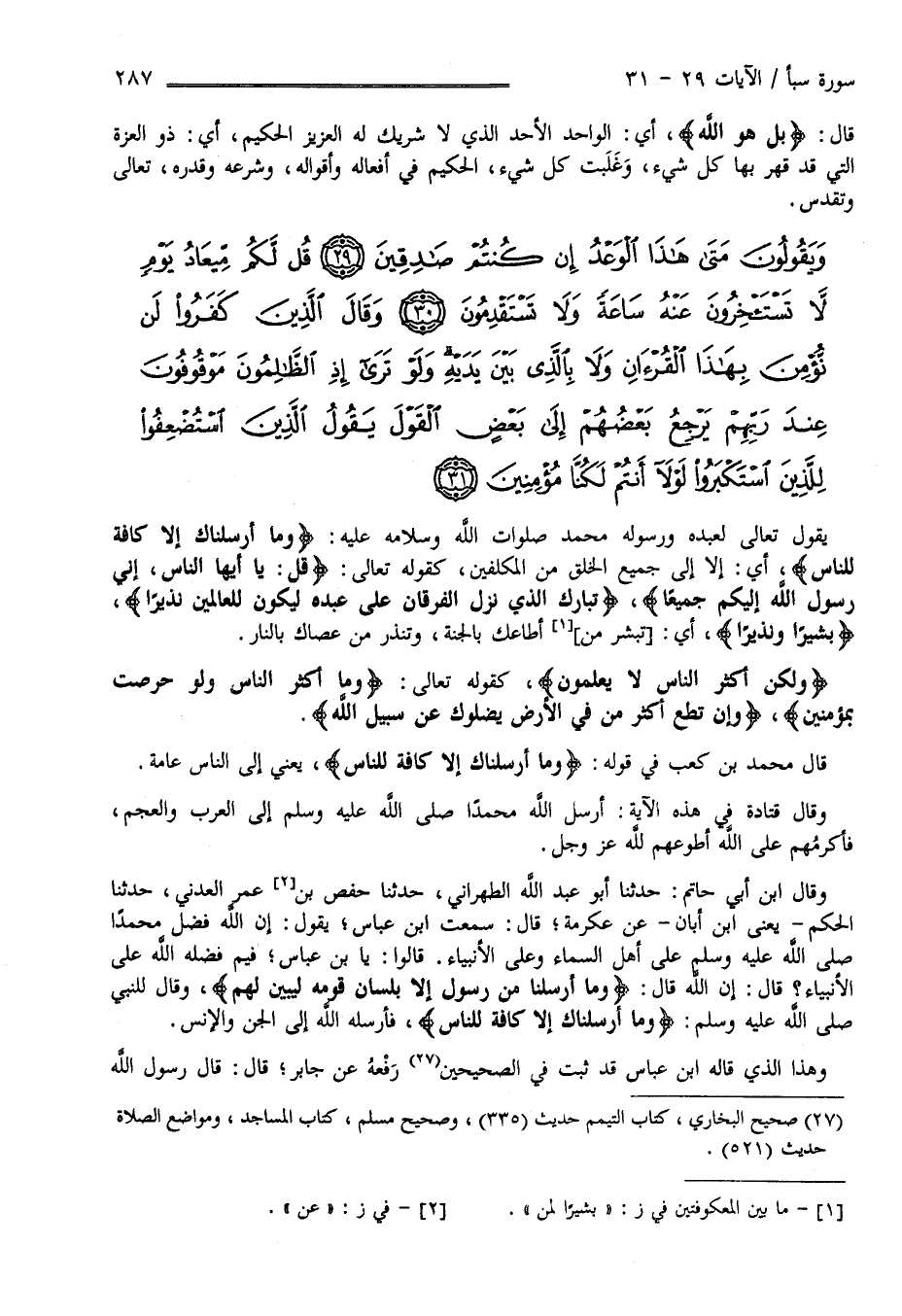 وَمَا أَرْسَلْنَاكَ إِلَّا كَافَّةً لِلنَّاسِ بَشِيرًا وَنَذِيرًا وَلَكِنَّ أَكْثَرَ النَّاسِ لَا يَعْلَمُونَ (28)