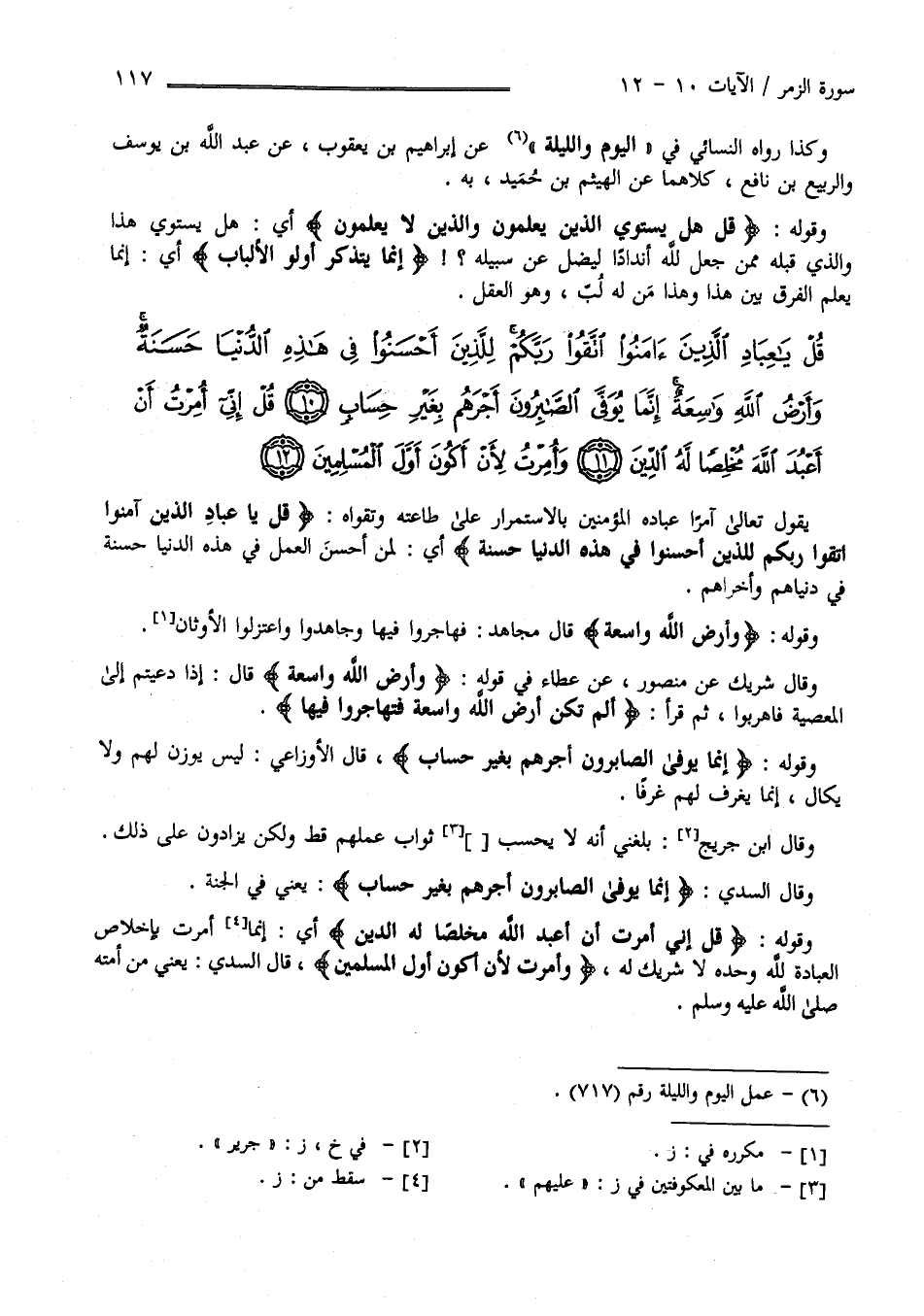 قُلْ يَا عِبَادِ الَّذِينَ آَمَنُوا اتَّقُوا رَبَّكُمْ لِلَّذِينَ أَحْسَنُوا فِي هَذِهِ الدُّنْيَا حَسَنَةٌ وَأَرْضُ اللَّهِ وَاسِعَةٌ إِنَّمَا يُوَفَّى الصَّابِرُونَ أَجْرَهُمْ بِغَيْرِ حِسَابٍ (10)