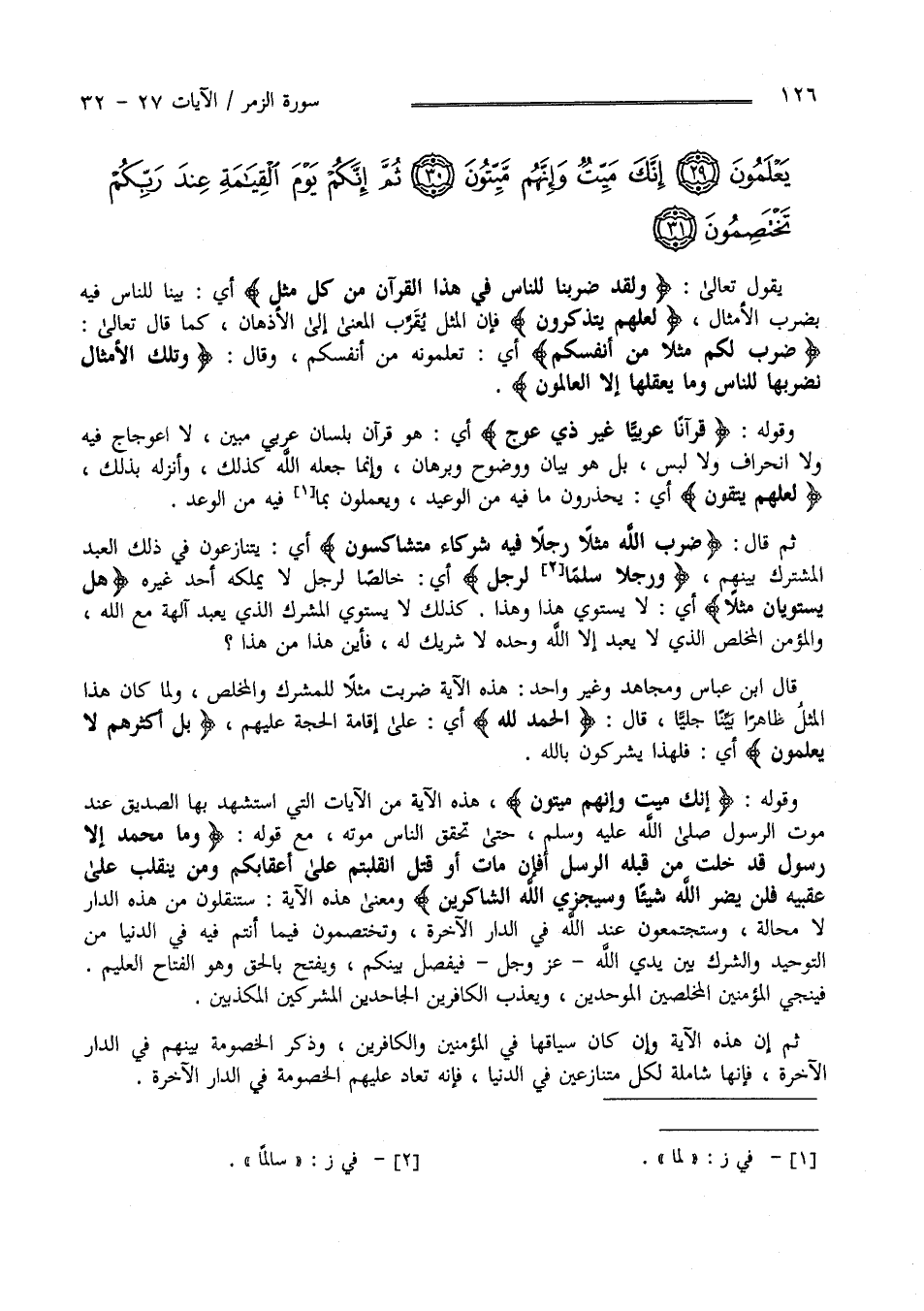 ضَرَبَ اللَّهُ مَثَلًا رَجُلًا فِيهِ شُرَكَاءُ مُتَشَاكِسُونَ وَرَجُلًا سَلَمًا لِرَجُلٍ هَلْ يَسْتَوِيَانِ مَثَلًا الْحَمْدُ لِلَّهِ بَلْ أَكْثَرُهُمْ لَا يَعْلَمُونَ