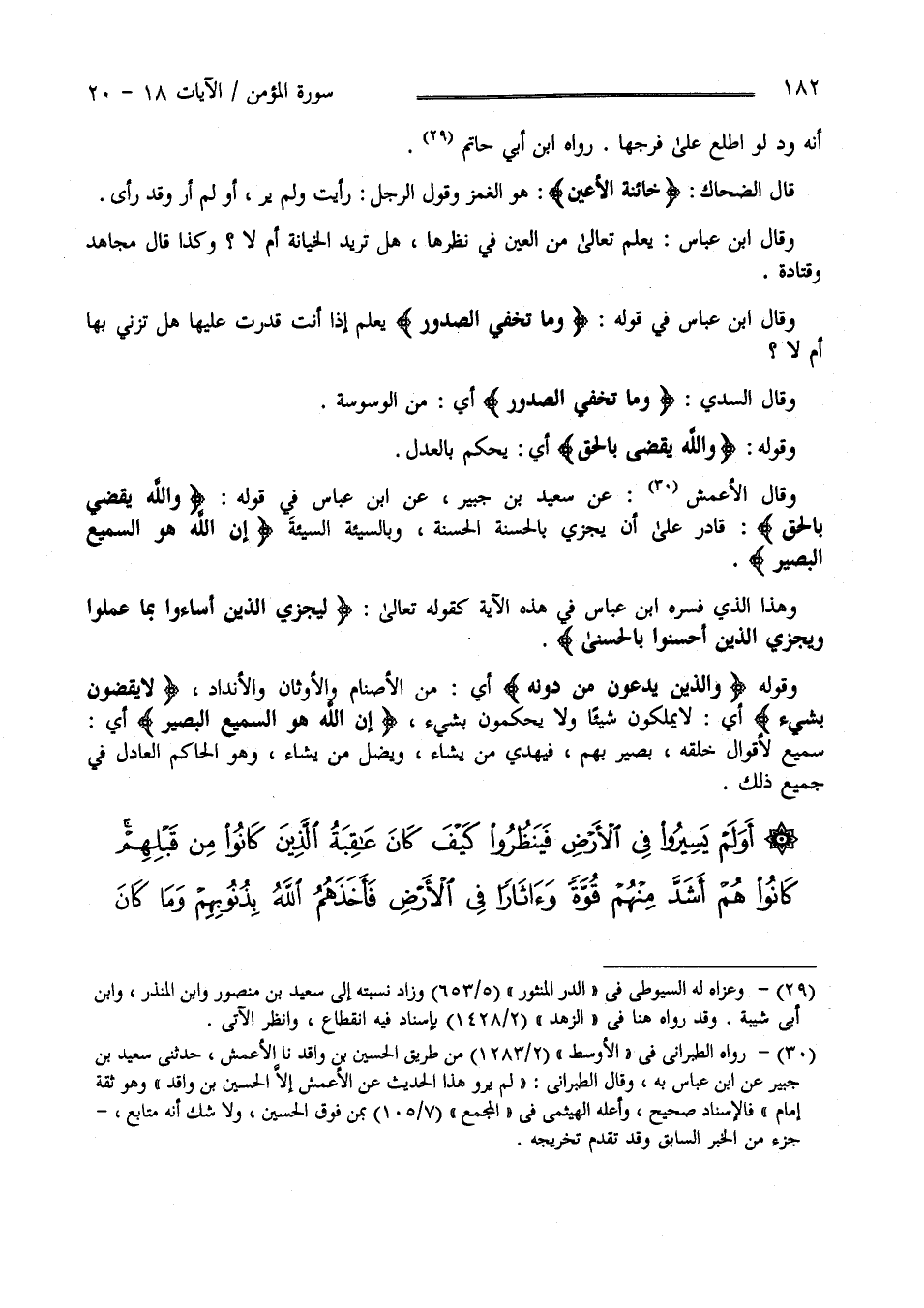 أَوْ لَمْ أَرَ وَقَدْ رَأَى وَقَالَ اِبْن عَبَّاس رَضِيَ اللَّه تَعَالَى عَنْهُمَا يَعْلَم اللَّه تَعَالَى مِنْ الْعَيْن فِي نَظَرِهَا هَلْ تُرِيد الْخِيَانَة أَمْ لَا ؟ وَكَذَا قَالَ مُجَاهِد وَقَتَادَة وَقَالَ اِبْن عَبَّاس رَضِيَ اللَّه عَنْهُمَا فِي قَوْله تَعَالَى " وَمَا تُخْفِي الصُّدُور " يَعْلَم إِذَا أَنْتَ قَدَرْت عَلَيْهَا هَلْ تَزْنِي بِهَا أَمْ لَا ؟ وَقَالَ السُّدِّيّ " وَمَا تُخْفِي الصُّدُور " أَيْ مِنْ الْوَسْوَسَة .
