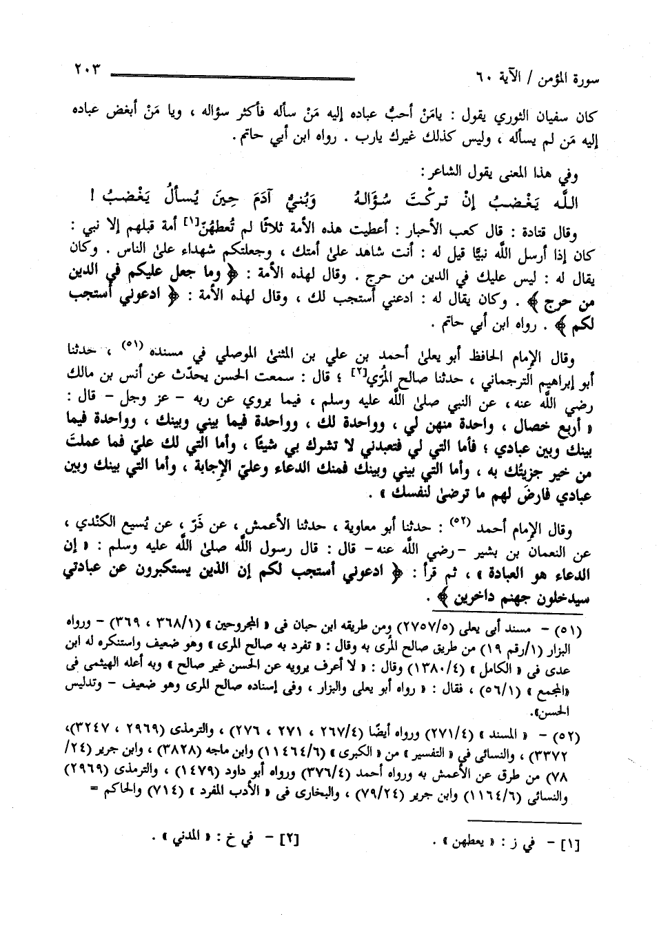 وَقَالَ الْإِمَام أَحْمَد حَدَّثَنَا أَبُو مُعَاوِيَة حَدَّثَنَا الْأَعْمَش عَنْ ذَرٍّ عَنْ يُسَيْع الْكِنْدِيّ عَنْ النُّعْمَان بْن بَشِير رَضِيَ اللَّه عَنْهُ قَالَ : قَالَ رَسُول اللَّه صَلَّى اللَّه عَلَيْهِ وَسَلَّمَ " إِنَّ الدُّعَاء هُوَ الْعِبَادَة " ثُمَّ قَرَأَ " اُدْعُونِي أَسْتَجِبْ لَكُمْ إِنَّ الَّذِينَ يَسْتَكْبِرُونَ عَنْ عِبَادَتِي سَيَدْخُلُونَ جَهَنَّم دَاخِرِينَ