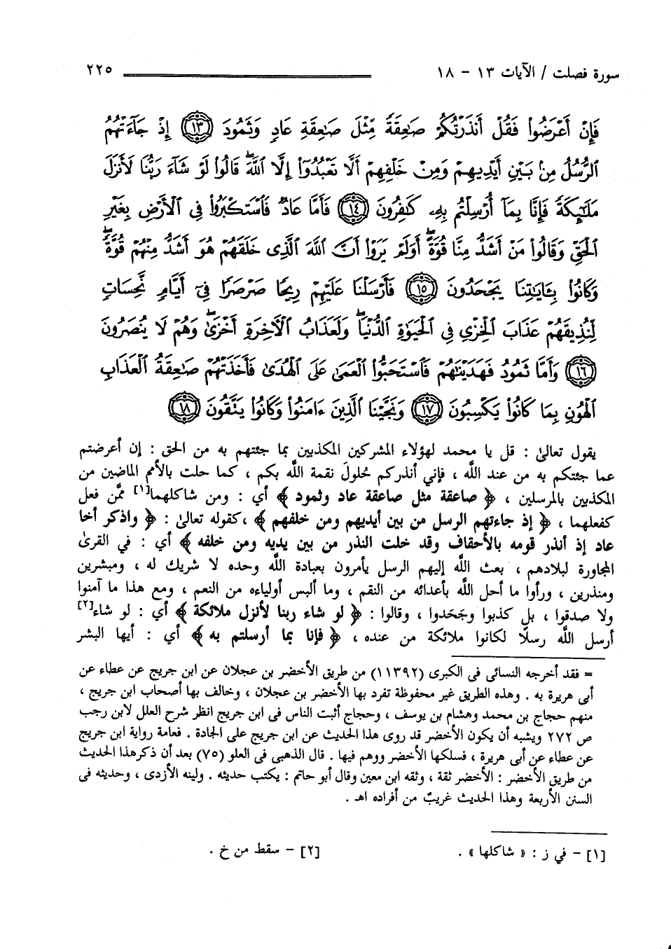 فَإِنْ أَعْرَضُوا فَقُلْ أَنْذَرْتُكُمْ صَاعِقَةً مِثْلَ صَاعِقَةِ عَادٍ وَثَمُودَ (13)