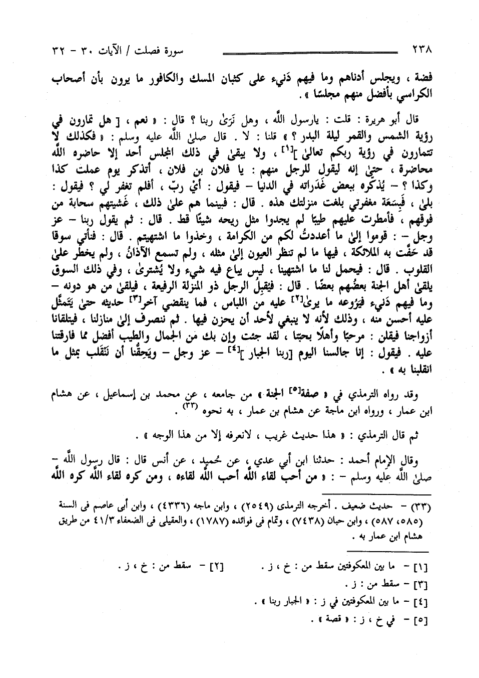 وَقَدْ رَوَاهُ التِّرْمِذِيّ فِي صِفَة الْجَنَّة مِنْ جَامِعه عَنْ مُحَمَّد بْن إِسْمَاعِيل عَنْ هِشَام بْن عَمَّار وَرَوَاهُ اِبْن مَاجَهْ عَنْ هِشَام بْن عَمَّار بِهِ نَحْوه ثُمَّ قَالَ التِّرْمِذِيّ هَذَا حَدِيث غَرِيب لَا نَعْرِفهُ إِلَّا مِنْ هَذَا الْوَجْه .