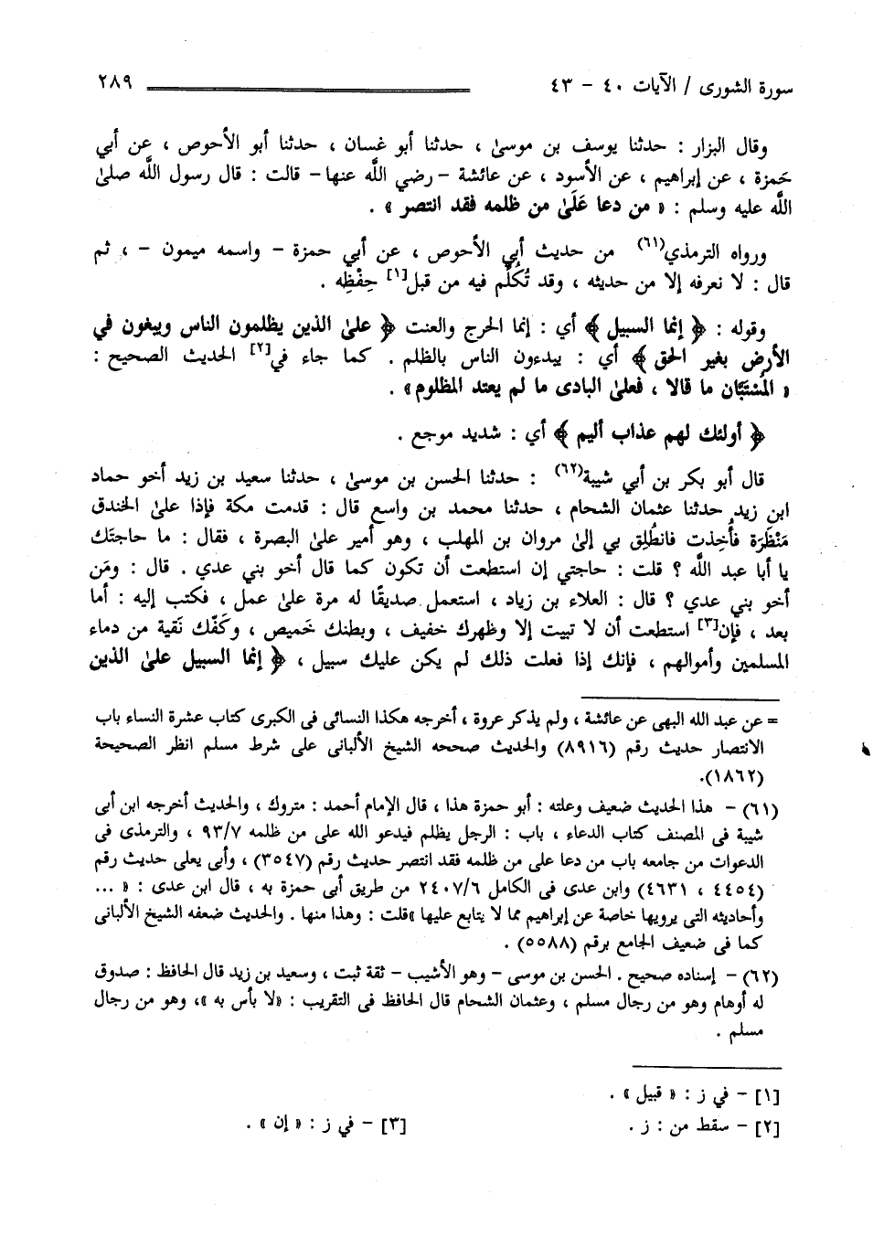 قَوْله عَزَّ وَجَلَّ " إِنَّمَا السَّبِيل " أَيْ إِنَّمَا الْحَرَج وَالْعَنَت" عَلَى الَّذِينَ يَظْلِمُونَ النَّاس وَيَبْغُونَ فِي الْأَرْض بِغَيْرِ الْحَقّ " أَيْ يَبْدَءُونَ النَّاس بِالظُّلْمِ كَمَا جَاءَ فِي الْحَدِيث الصَّحِيح " الْمُسْتَبَّانِ مَا قَالَا فَعَلَى الْبَادِئ مَا لَمْ يَعْتَدِ الْمَظْلُوم " " أُولَئِكَ لَهُمْ عَذَاب أَلِيم " أَيْ شَدِيد مُوجِع .