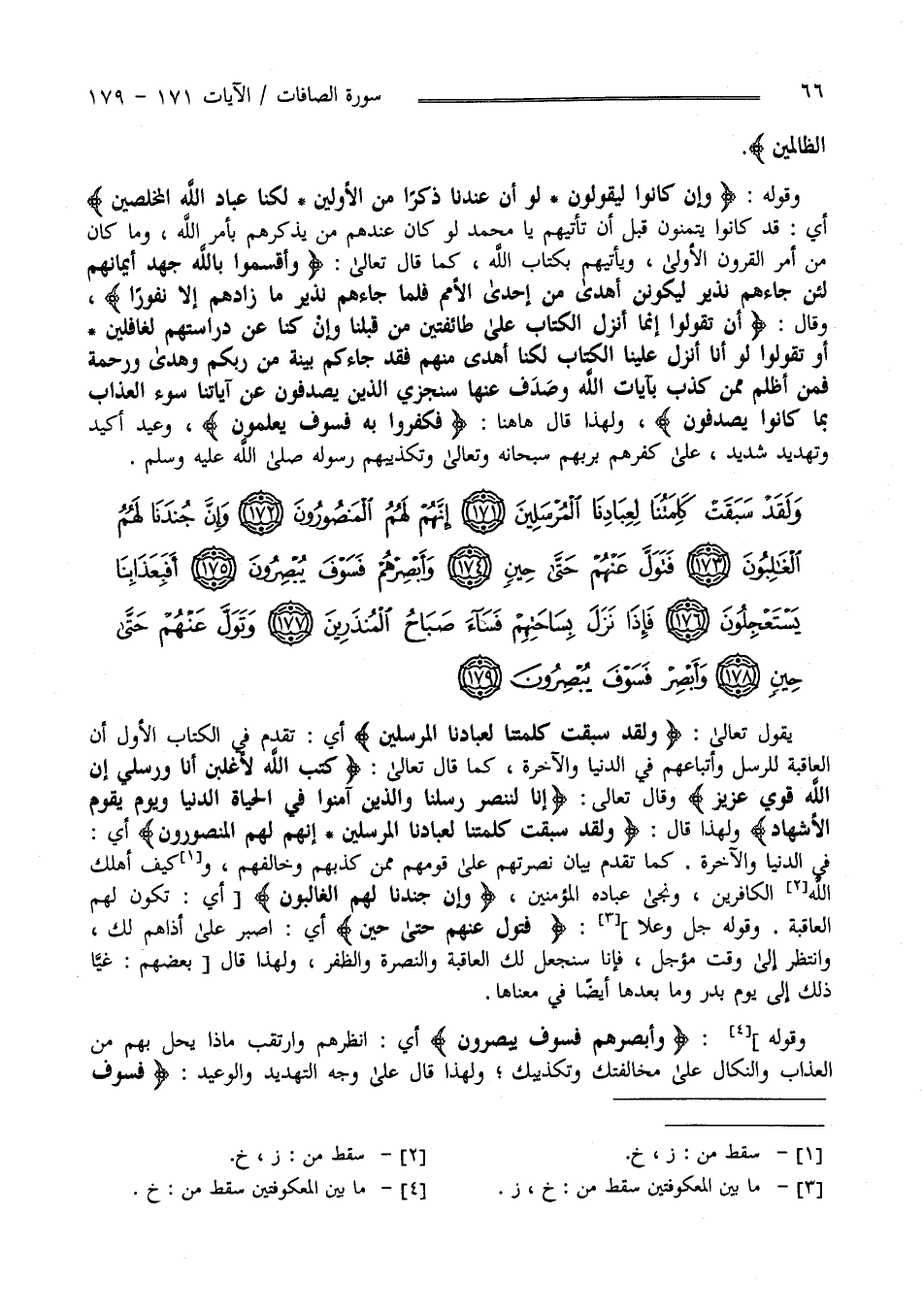يَقُول تَبَارَكَ وَتَعَالَى " وَلَقَدْ سَبَقَتْ كَلِمَتنَا لِعِبَادِنَا الْمُرْسَلِينَ " أَيْ تَقَدَّمَ فِي الْكِتَاب الْأَوَّل أَنَّ الْعَاقِبَة لِلرُّسُلِ وَأَتْبَاعهمْ فِي الدُّنْيَا وَالْآخِرَة كَمَا قَالَ تَعَالَى " كَتَبَ اللَّه لَأَغْلِبَنَّ أَنَا وَرُسُلِي إِنَّ اللَّه قَوِيّ عَزِيز " وَقَالَ عَزَّ وَجَلَّ " إِنَّا لَنَنْصُر رُسُلنَا وَاَلَّذِينَ آمَنُوا فِي الْحَيَاة الدُّنْيَا وَيَوْم يَقُوم الْأَشْهَاد " وَلِهَذَا قَالَ جَلَّ جَلَاله " وَلَقَدْ سَبَقَتْ كَلِمَتنَا لِعِبَادِنَا الْمُرْسَلِينَ إِنَّهُمْ لَهُمْ الْمَنْصُورُونَ " أَيْ فِي الدُّنْيَا وَالْآخِرَة كَمَا تَقَدَّمَ بَيَان نُصْرَتهمْ عَلَى قَوْمِهِمْ مِمَّنْ كَذَّبَهُمْ وَخَالَفَهُمْ كَيْفَ أَهْلَكَ اللَّه الْكَافِرِينَ وَنَجَّى عِبَاده الْمُؤْمِنِينَ .