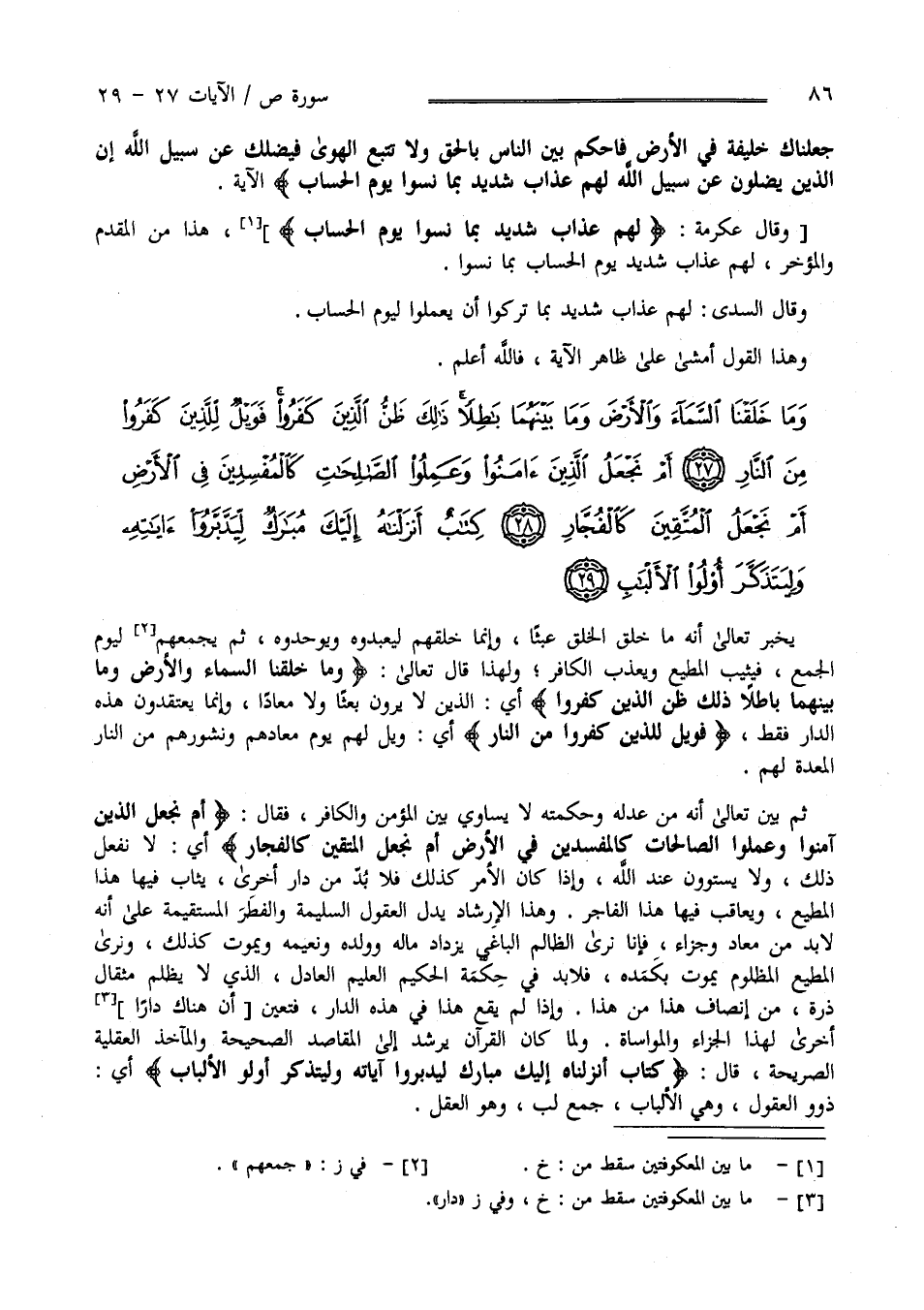 أَمْ نَجْعَلُ الَّذِينَ آمَنُوا وَعَمِلُوا الصَّالِحَاتِ كَالْمُفْسِدِينَ فِي الْأَرْضِ أَمْ نَجْعَلُ الْمُتَّقِينَ كَالْفُجَّارِ