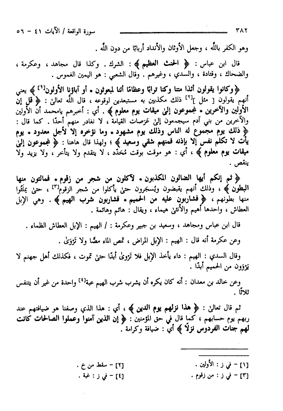 " ثُمَّ إِنَّكُمْ أَيّهَا الضَّالُّونَ الْمُكَذِّبُونَ لَآكِلُونَ مِنْ شَجَر مِنْ زَقُّوم فَمَالِئُونَ مِنْهَا الْبُطُون " وَذَلِكَ أَنَّهُمْ يَقْبِضُونَ وَيَسْجُرُونَ حَتَّى يَأْكُلُوا مِنْ شَجَر الزَّقُّوم حَتَّى يَمْلَئُوا مِنْهَا بُطُونهمْ .