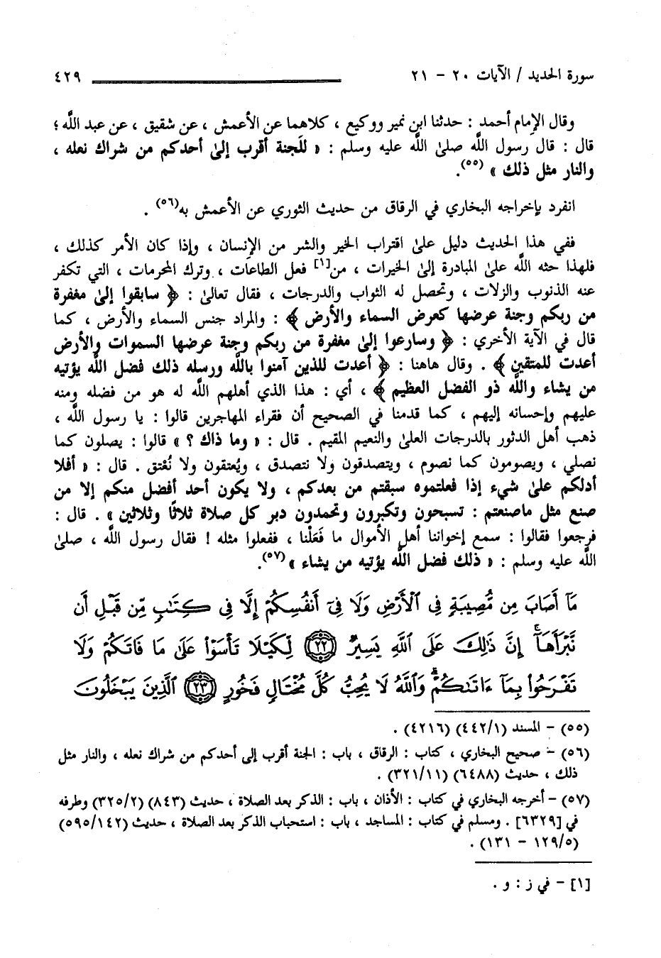 سَابِقُوا إِلَى مَغْفِرَةٍ مِنْ رَبِّكُمْ وَجَنَّةٍ عَرْضُهَا كَعَرْضِ السَّمَاءِ وَالْأَرْضِ أُعِدَّتْ لِلَّذِينَ آمَنُوا بِاللَّهِ وَرُسُلِهِ ذَلِكَ فَضْلُ اللَّهِ يُؤْتِيهِ مَنْ يَشَاءُ وَاللَّهُ ذُو الْفَضْلِ الْعَظِيمِ
