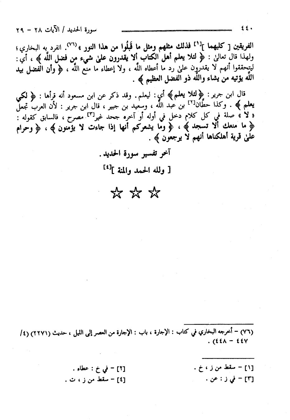 آخِر تَفْسِير سُورَة الْحَدِيد وَلِلَّهِ الْحَمْد وَالْمِنَّة .