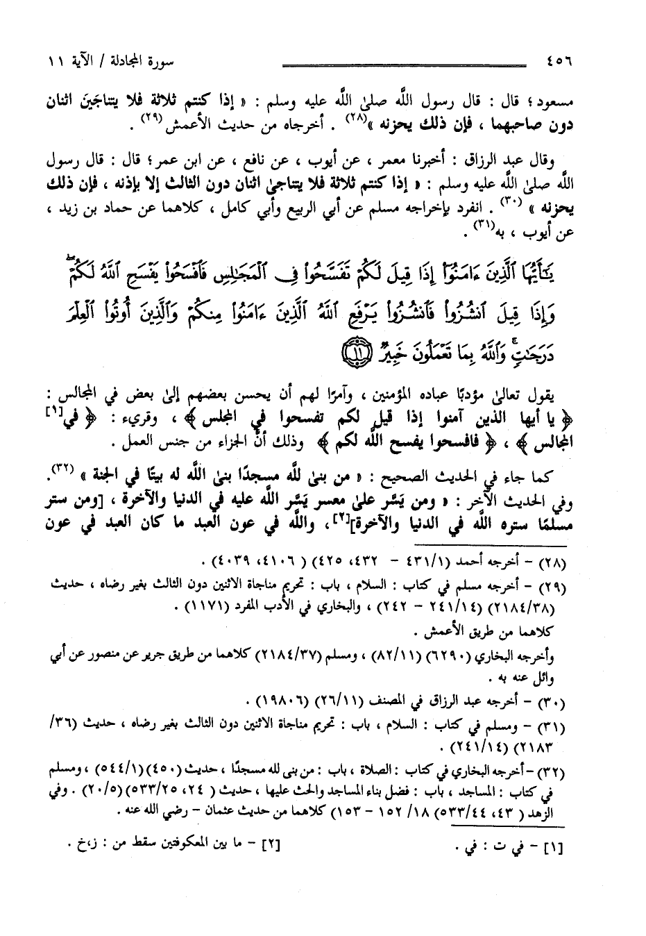يَا أَيُّهَا الَّذِينَ آمَنُوا إِذَا قِيلَ لَكُمْ تَفَسَّحُوا فِي الْمَجَالِسِ فَافْسَحُوا يَفْسَحِ اللَّهُ لَكُمْ وَإِذَا قِيلَ انْشُزُوا فَانْشُزُوا يَرْفَعِ اللَّهُ الَّذِينَ آمَنُوا مِنْكُمْ وَالَّذِينَ أُوتُوا الْعِلْمَ دَرَجَاتٍ وَاللَّهُ بِمَا تَعْمَلُونَ
