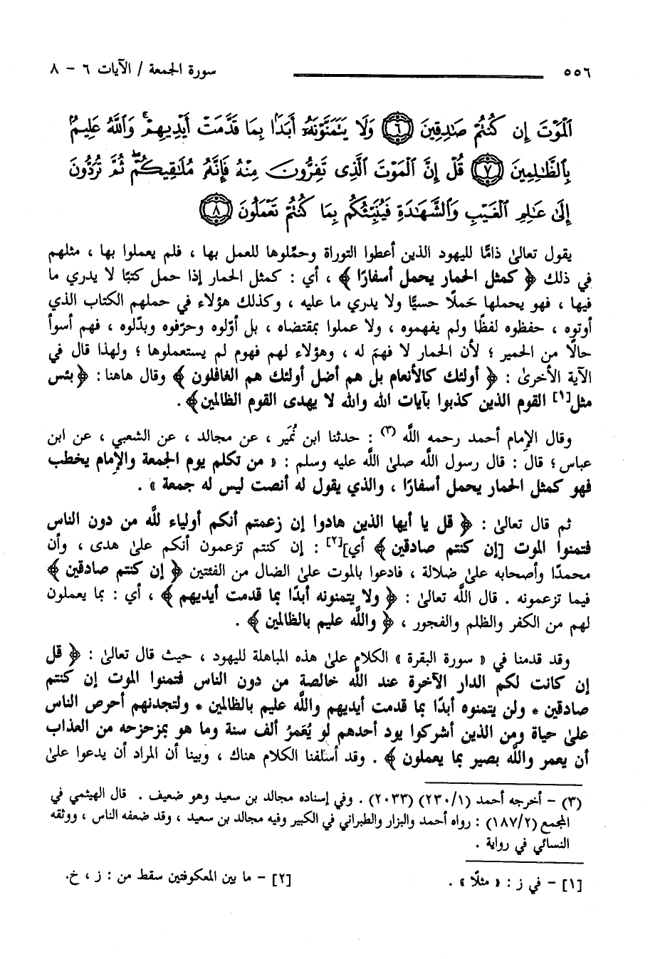 قُلْ يَا أَيُّهَا الَّذِينَ هَادُوا إِنْ زَعَمْتُمْ أَنَّكُمْ أَوْلِيَاءُ لِلَّهِ مِنْ دُونِ النَّاسِ فَتَمَنَّوُا الْمَوْتَ إِنْ كُنْتُمْ صَادِقِينَ (6)