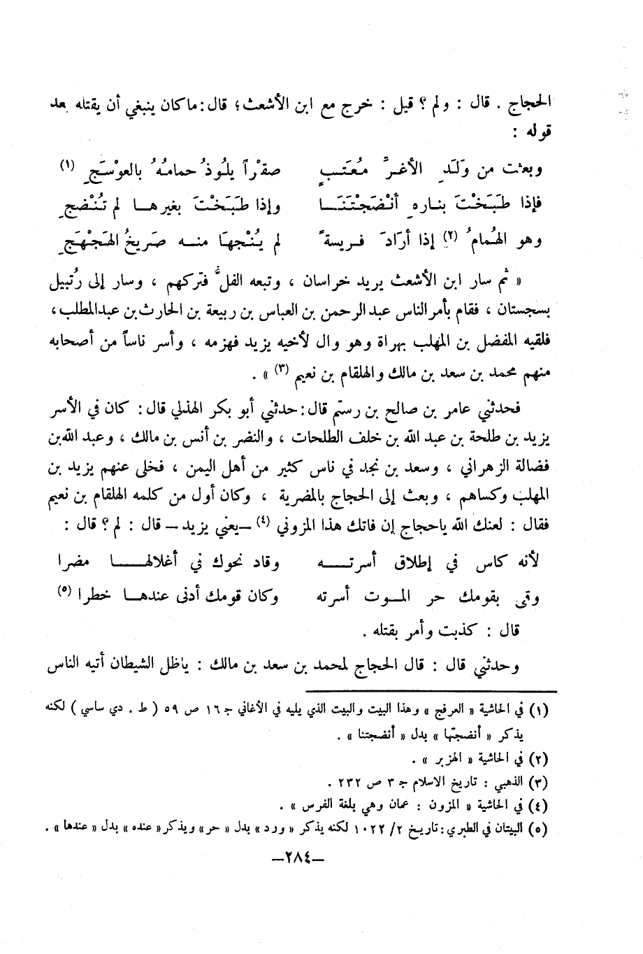 فَحَدثني عَامر بْن صَالح بْن رستم قَالَ حَدَّثَنِي أَبُو بَكْر الْهُذلِيّ قَالَ كَانَ فِي الْأسر يَزِيد بْن طَلْحَة بْن عَبْد اللَّهِ بْن خلف الطلحات وَالنضْر بْن أنس بْن مَالك وَعبد اللَّه بْن فضَالة الزهْرَانِي وَسعد بْن نجد فِي نَاس كثير من أهل الْيمن فخلى عَنهم يَزِيد بْن الْمُهلب وكساهم وَبعث إِلَى الْحجَّاج بالمضرية وَكَانَ أول من كَلمه الهلقام بْن نعيم فَقَالَ لعَنك اللَّه يَا حجاج إِن فاتك هَذَا المزوني يعَني يَزِيد قَالَ لم قَالَ ... لِأَنَّهُ كاس فِي إِطْلَاق أسرته وقاد نَحْوك فِي أغلالها مضرا ...