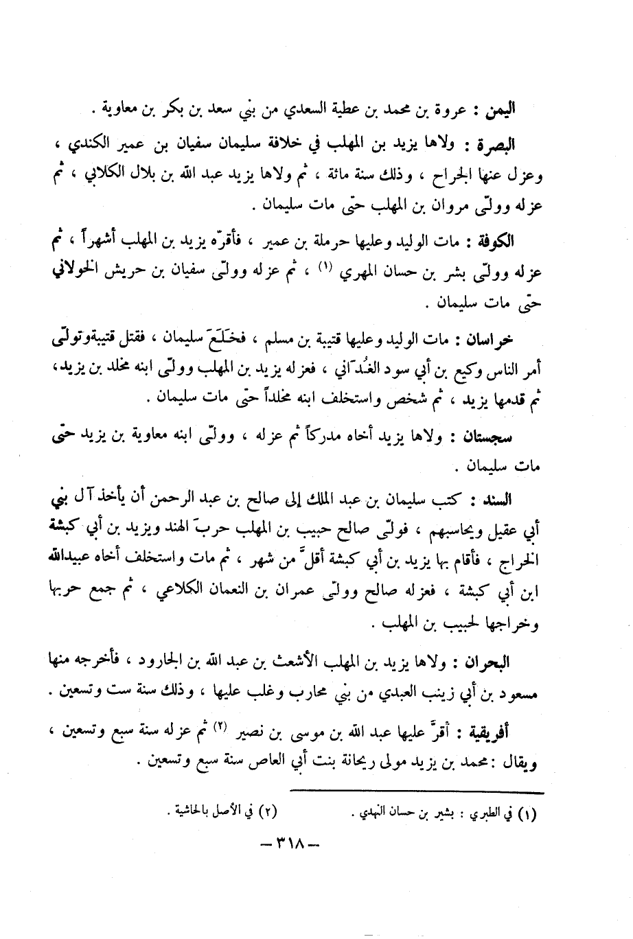 السَّنَد كتب سُلَيْمَان بْن عَبْد الْملك إِلَى صَالح بْن عَبْد الرَّحْمَن أَن يَأْخُذ آل بَنِي أَبِي عقيل ويحاسبهم فولى صَالح حبيب بْن الْمُهلب حَرْب الْهِنْد وَيزِيد بْن أَبِي كَبْشَة الْخراج فَأَقَامَ بهَا يَزِيد بْن أَبِي كَبْشَة أقل من شهر ثمَّ مَاتَ واستخلف أَخَاهُ عبيد اللَّه بْن أَبِي كَبْشَة فَعَزله صَالح وَولى عمرَان بْن النُّعْمَان الكلَاعِي ثمَّ جمع حربها وخراجها لحبيب بْن الْمُهلب