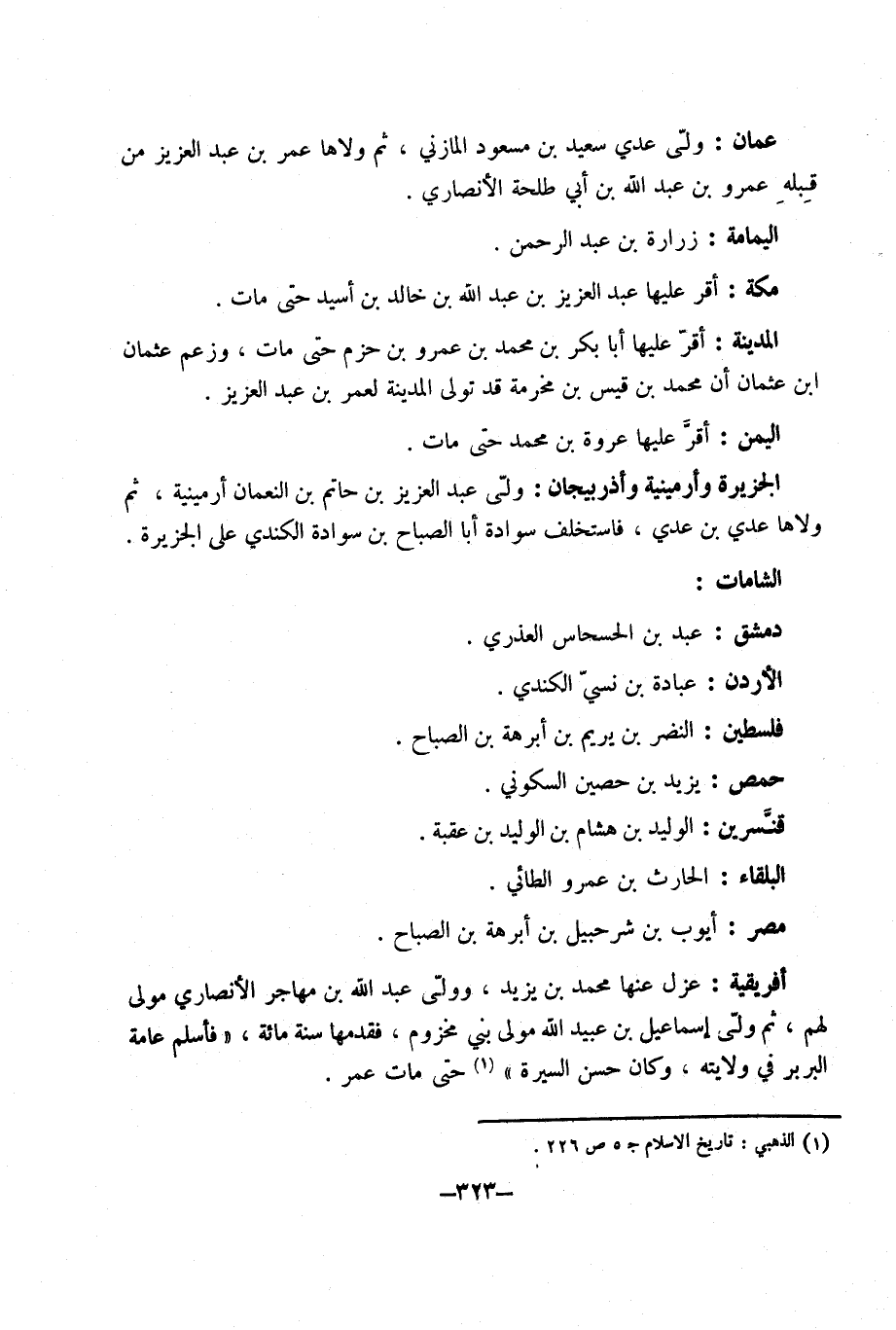 عمان ولى عدي سعيد بْن مَسْعُود الْمَازِني ثمَّ ولاها عُمَر بْن عَبْد الْعَزِيز من قبله عَمْرو بْن عَبْد اللَّهِ بْن أَبِي طَلْحَة الْأنْصَارِيّ