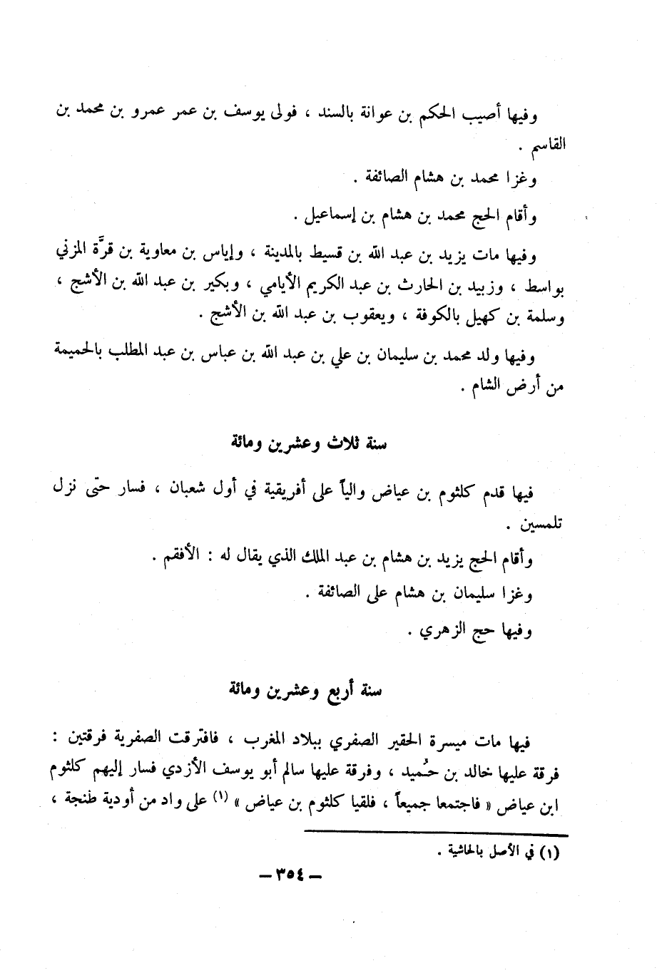 سنة أَربع وَعشْرين وَمِائَة فِيهَا مَاتَ ميسرَة الحقير الصفري بِبِلَاد الْمغرب فافترقت الصفرية فرْقَتَيْن فرقة عَلَيْهَا خَالِد بْن حميد وَفرْقَة عَلَيْهَا سَالم أَبُو يُوسُف الْأَزْدِيّ فَسَار إِلَيْهِم كُلْثُوم ابْن عِيَاض فاجتمعا جَمِيعًا فلقيا كُلْثُوم بْن عِيَاض عَلَى وَاد من أَوديَة طنجة