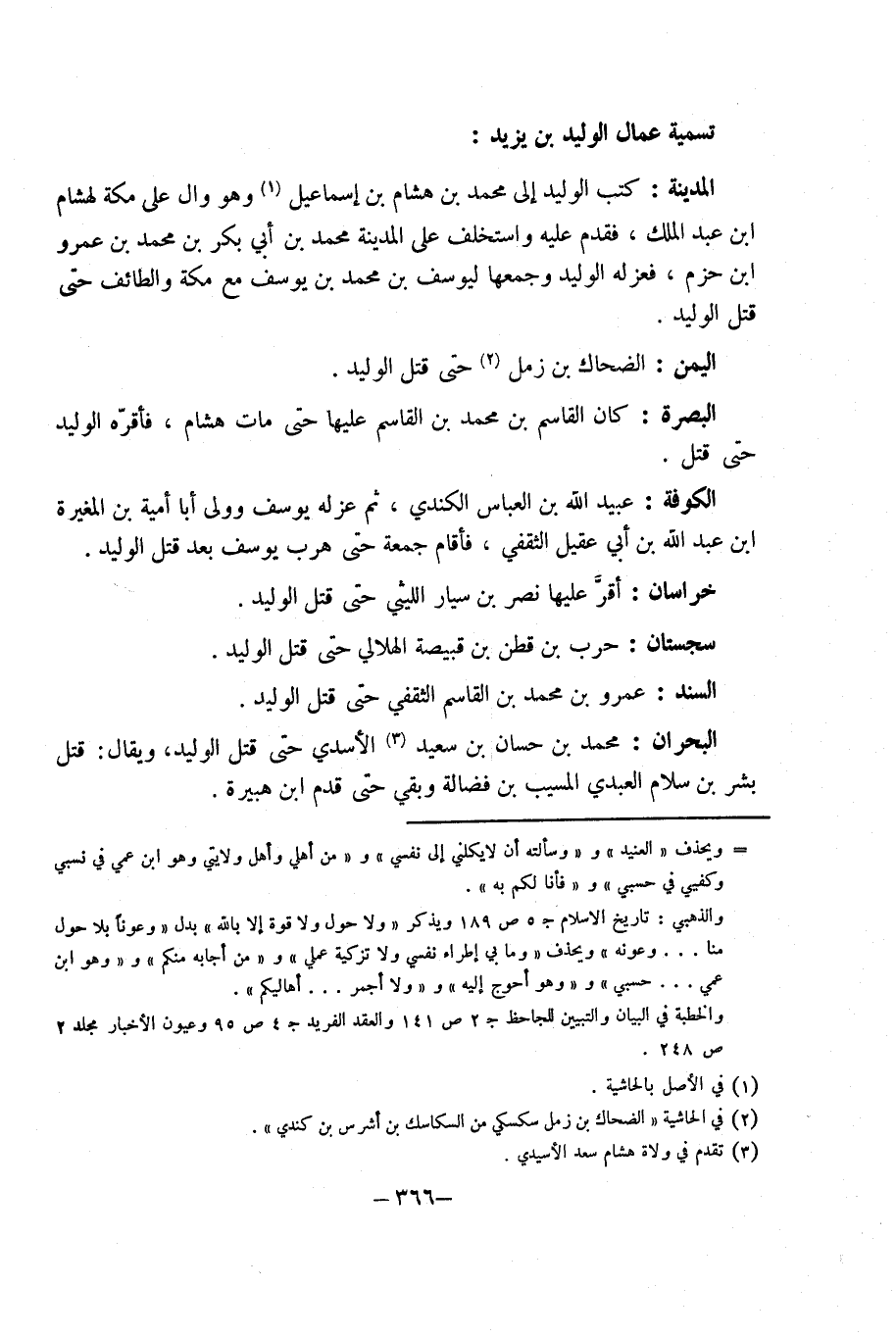 تَسْمِيَة عُمَّال الْوَلِيد بْن يَزِيد