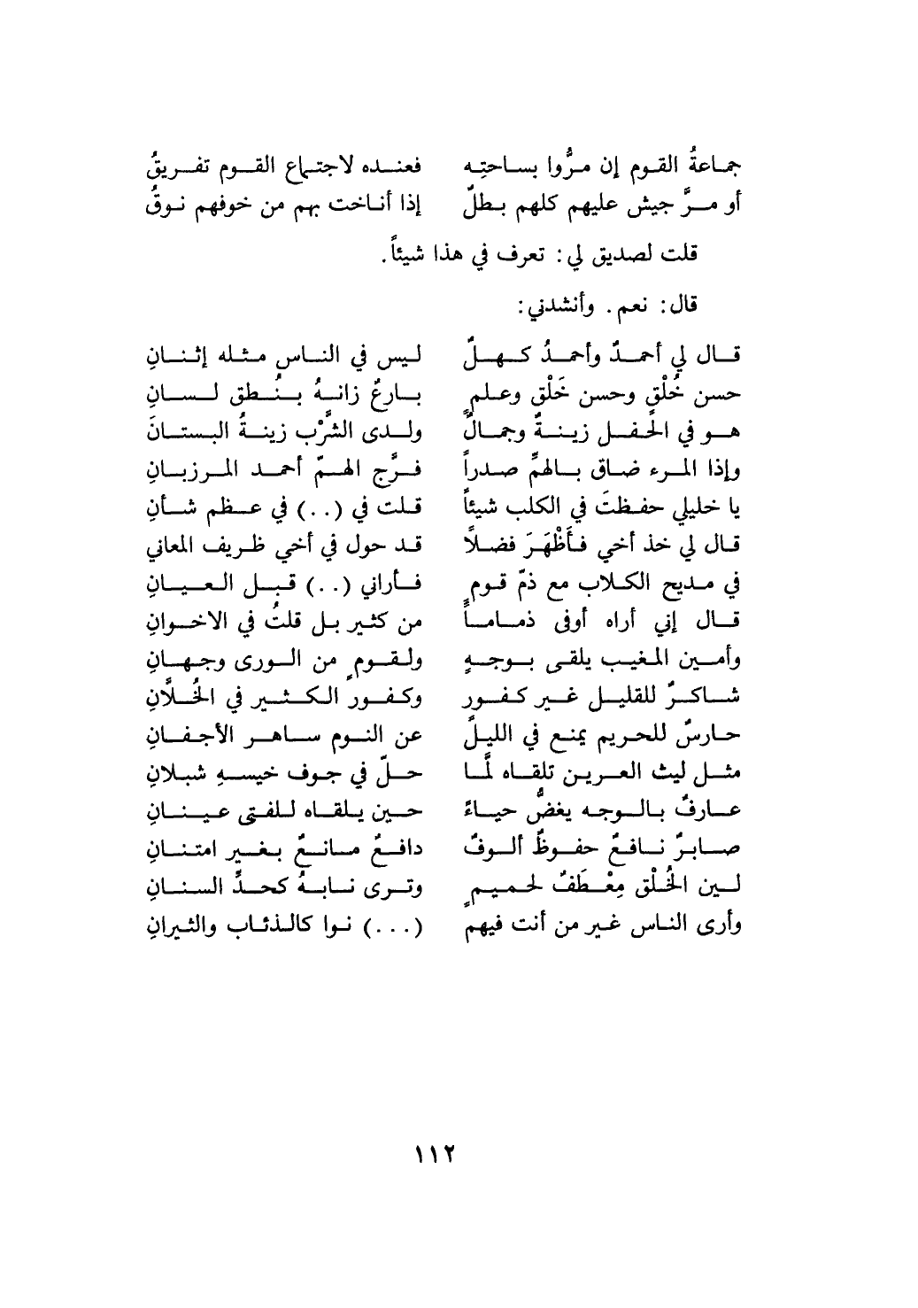 قلت لصديق لي أتعرف في هذا المعنى شيئا قال نعم وأنشدني