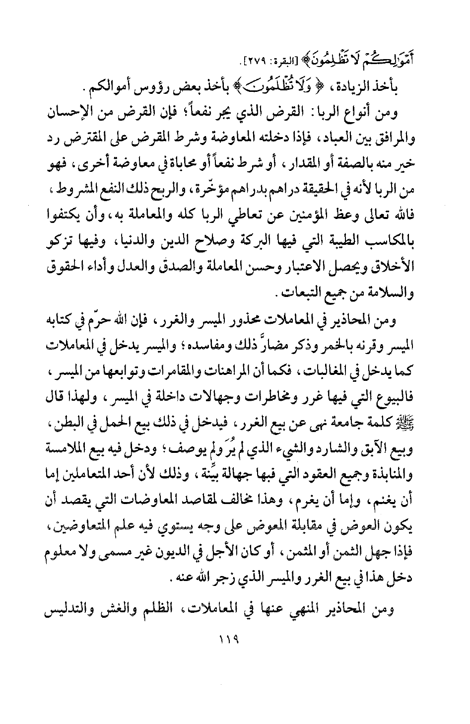 ومن أنواع الربا: القرض الذي يجر نفعا؛ فإن القرض من الإحسان والمرافق بين العباد، فإذا دخلته المعاوضة وشرط المقرض على المقترض رد خير منه بالصفة أو المقدار، أو شرط نفعا أو محاباة في معاوضة أخرى، فهو من الربا؛ لأنه في الحقيقة دراهم بدراهم مؤخرة، والربح ذلك النفع المشروط، فالله تعالى وعظ المؤمنين عن تعاطي الربا كله والمعاملة به، وأن يكتفوا بالمكاسب الطيبة التي فيها البركة وصلاح الدين والدنيا، وفيها تزكو الأخلاق، ويحصل الاعتبار وحسن المعاملة والصدق والعدل وأداء الحقوق والسلامة من جميع التبعات.